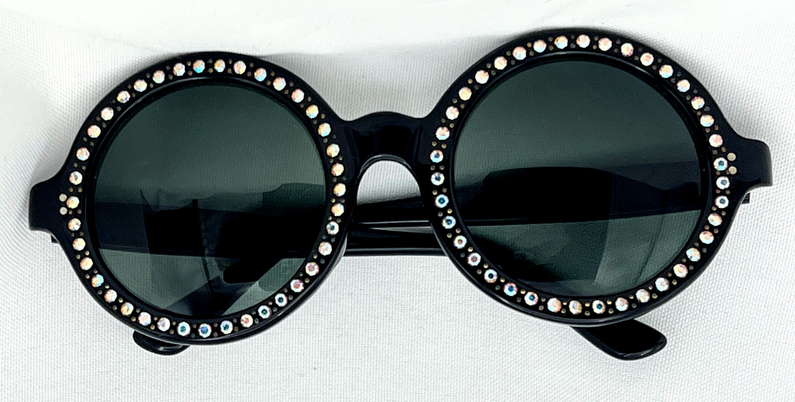 Hollywood Vintage Rhinestone Studded Oleg Cassini Mod Round 60s Sunglasses 415