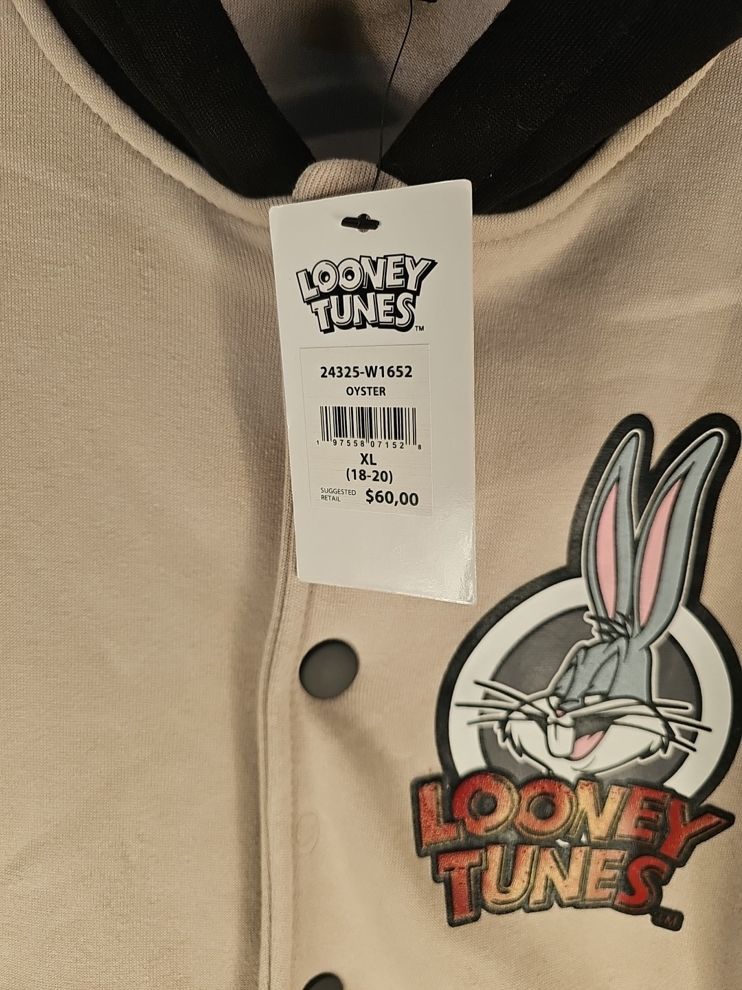 как выглядит Looney Tunes Youth XL 18-20 Bugs Bunny Front Snap Button Long Sleeve Hoodie фото