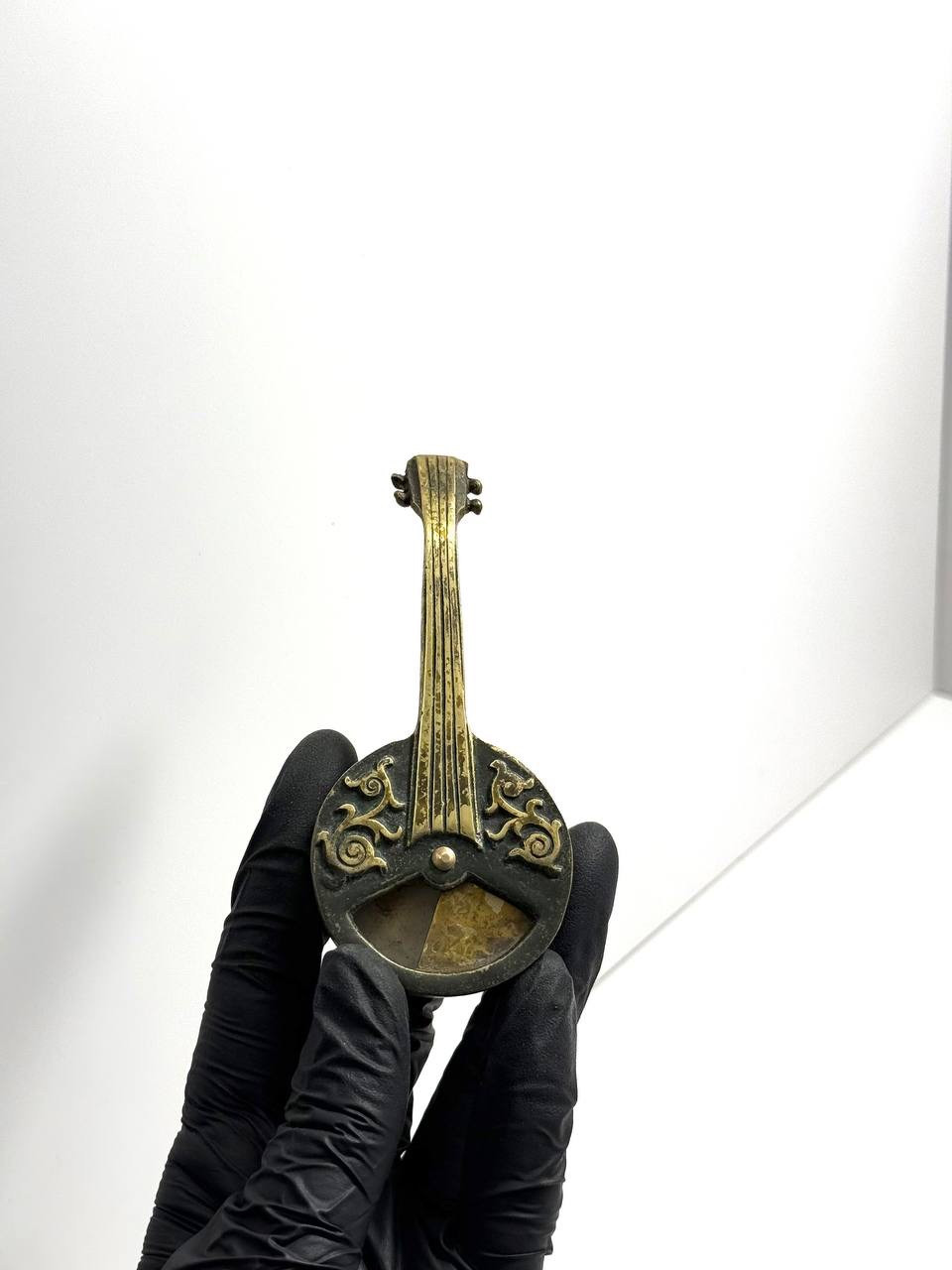 как выглядит Vintage Banjo-Shaped Brass Trinket Box  Small Musical Instrument Jewelry Case фото