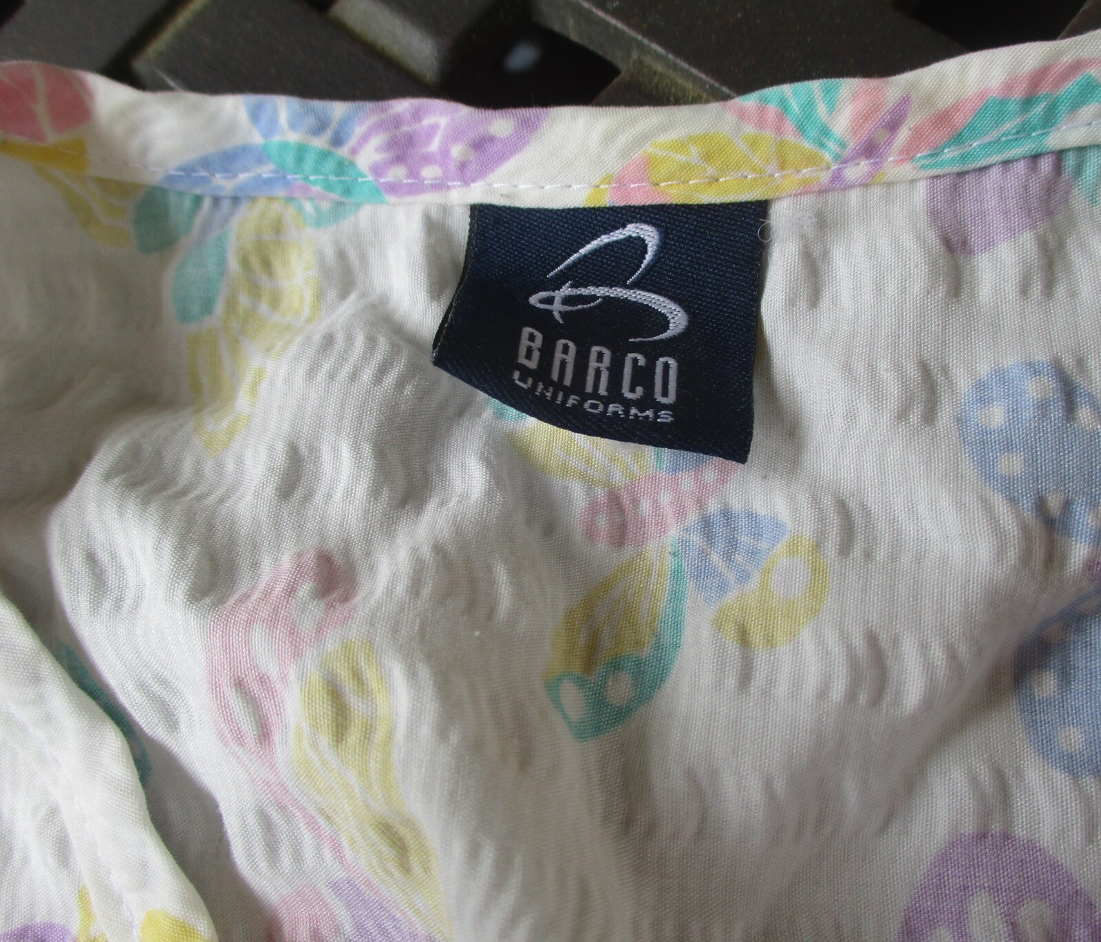Barco Uniforms Brand SCRUB TOP Size M -White Embossed Background -Butterflies