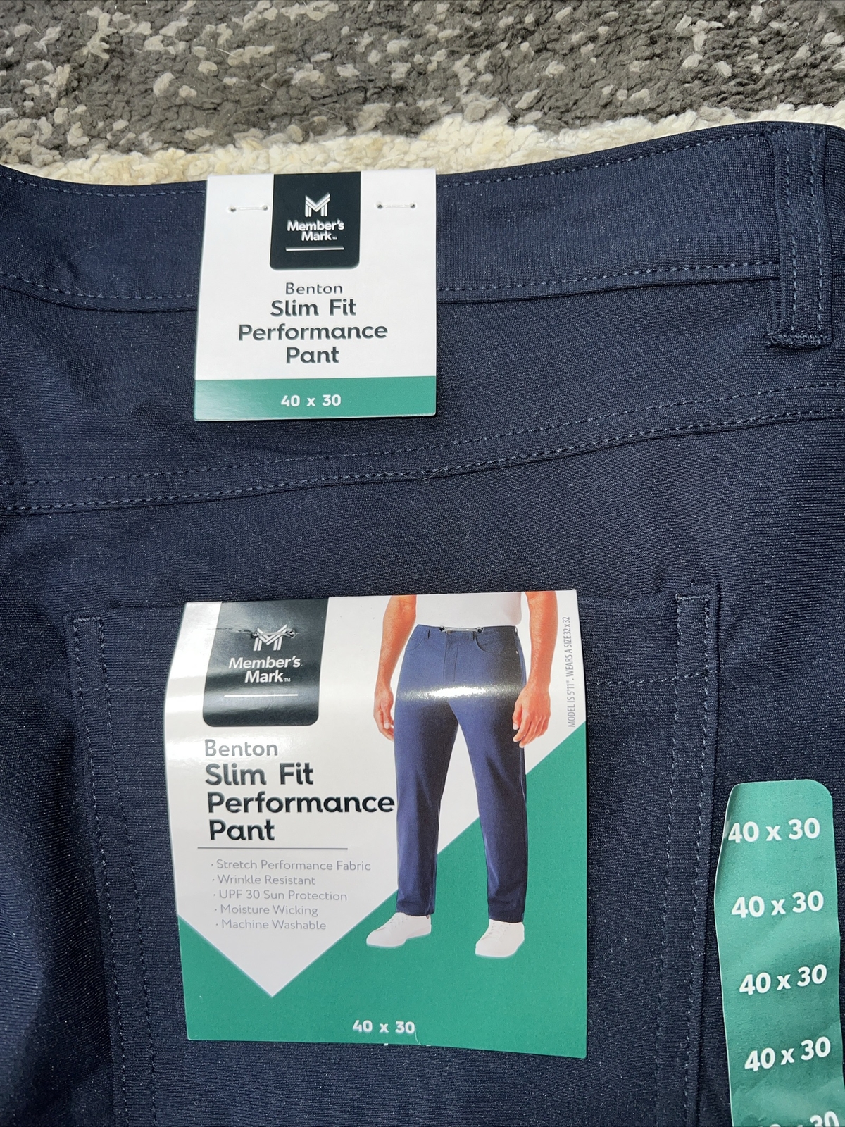 как выглядит Members Mark Mens Performance Slim Fit Benton Pant Navy Size 40x30 NWT фото
