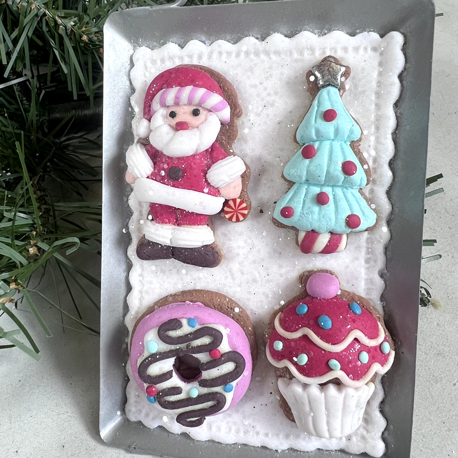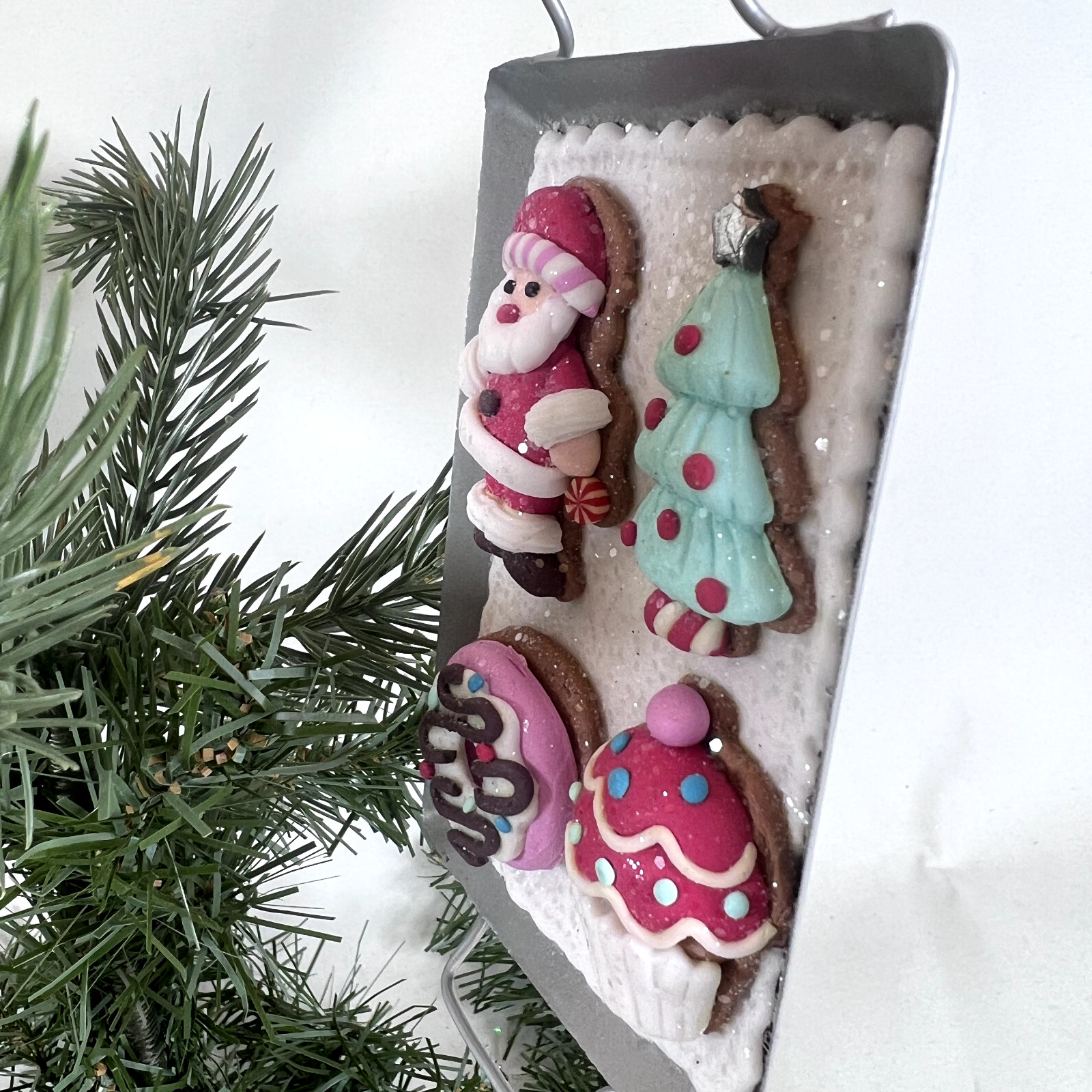 Set 2 Kurt Adler Christmas Cookie Tray Ornament Santa Gingerbread Dessert Metal