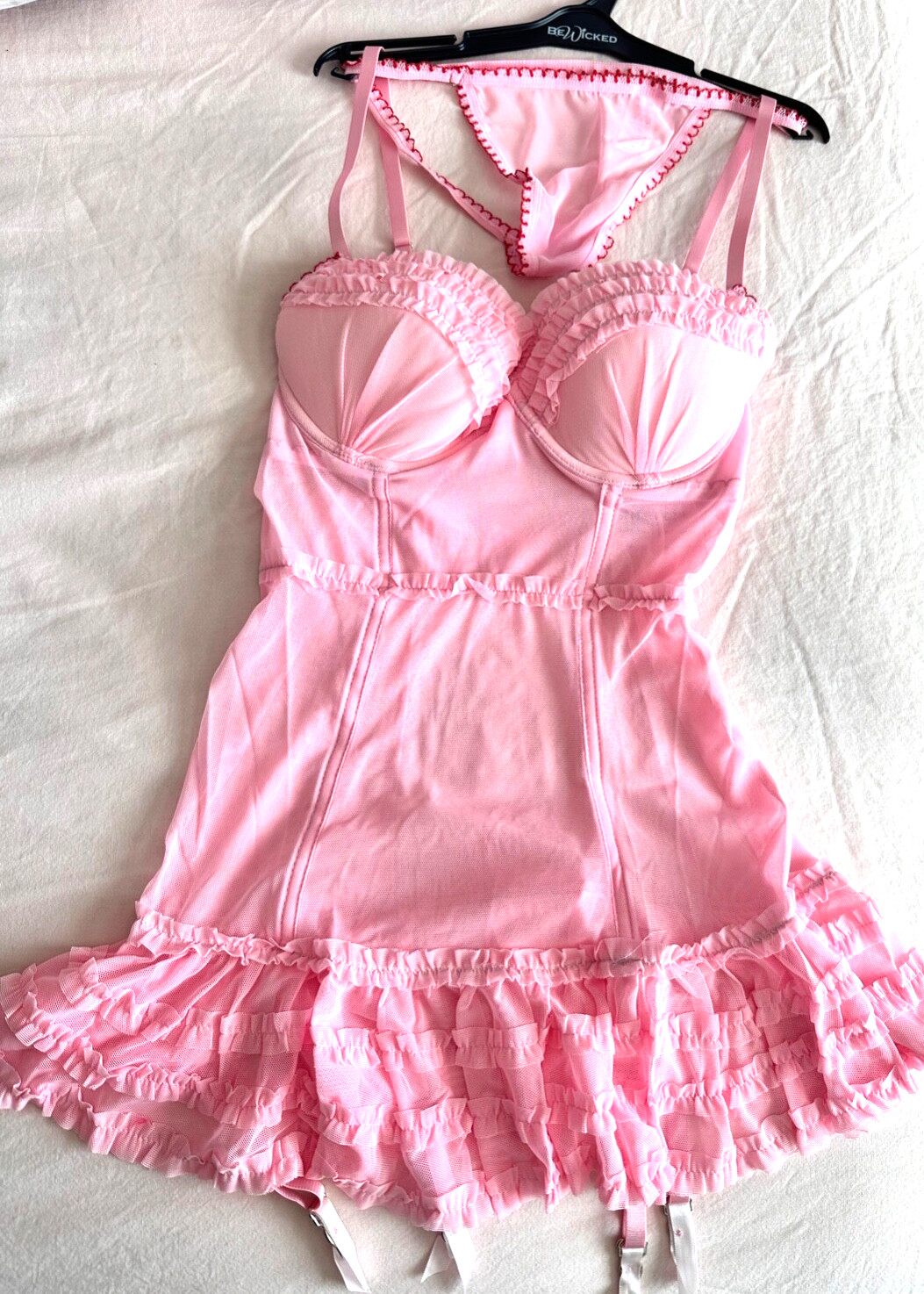 как выглядит Candy pink sheer chemise with contrasting pink center front detail Size S / L фото