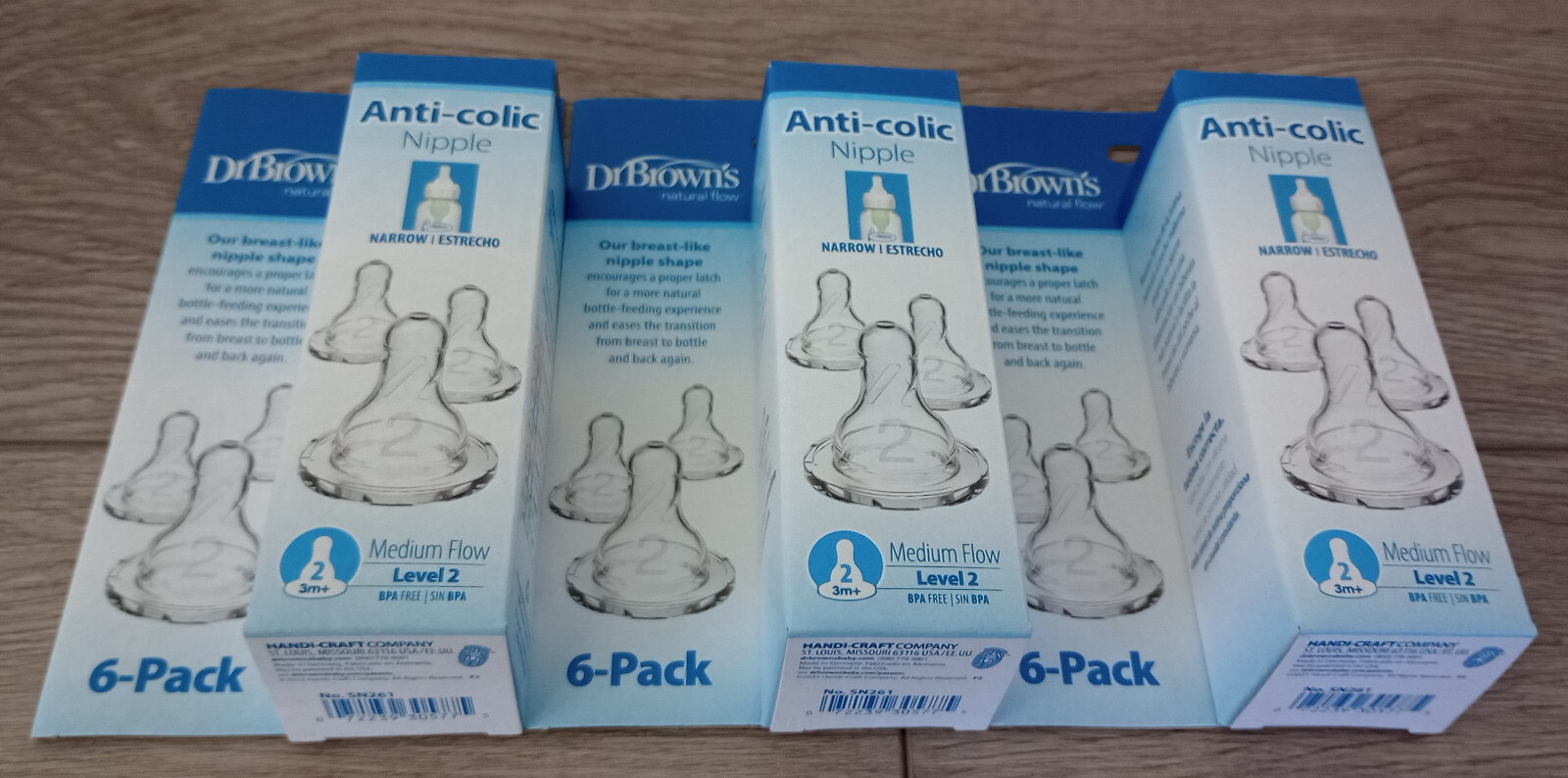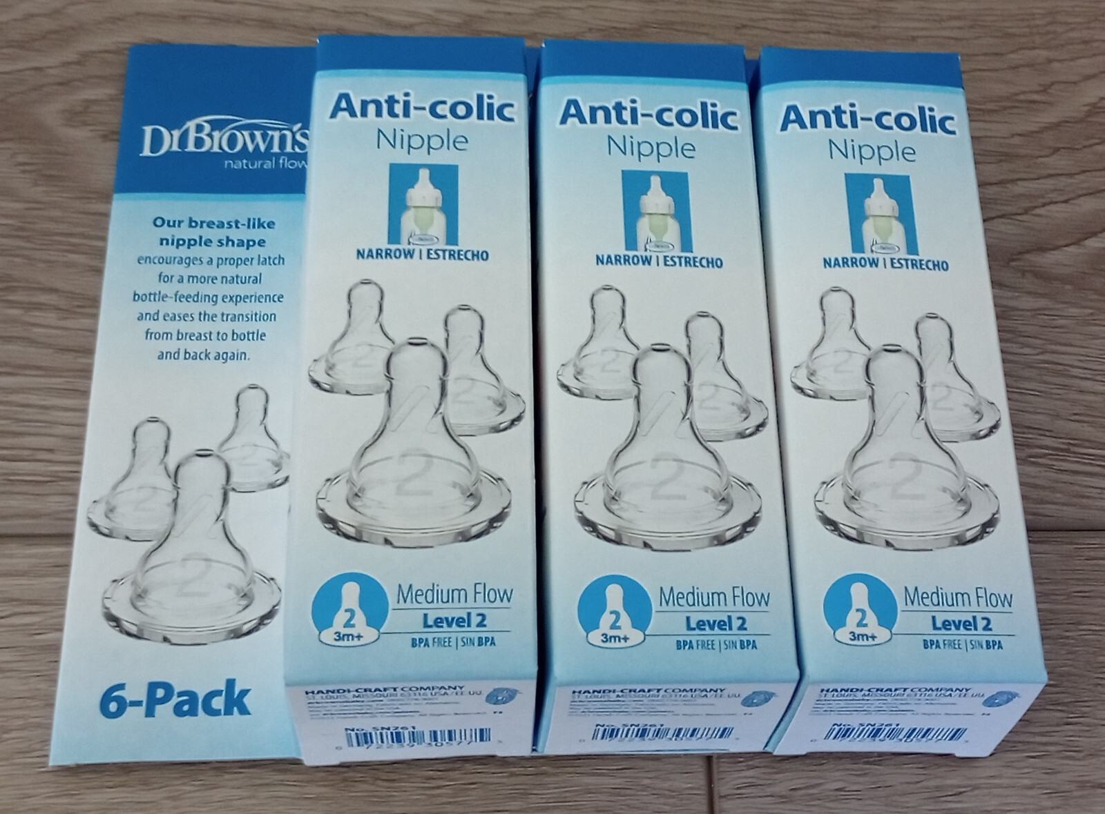 3 X Dr. Brown's 6 Pk Natural Flow Anti-Colic Nipple Level 2 Medium Flow 3m NEW