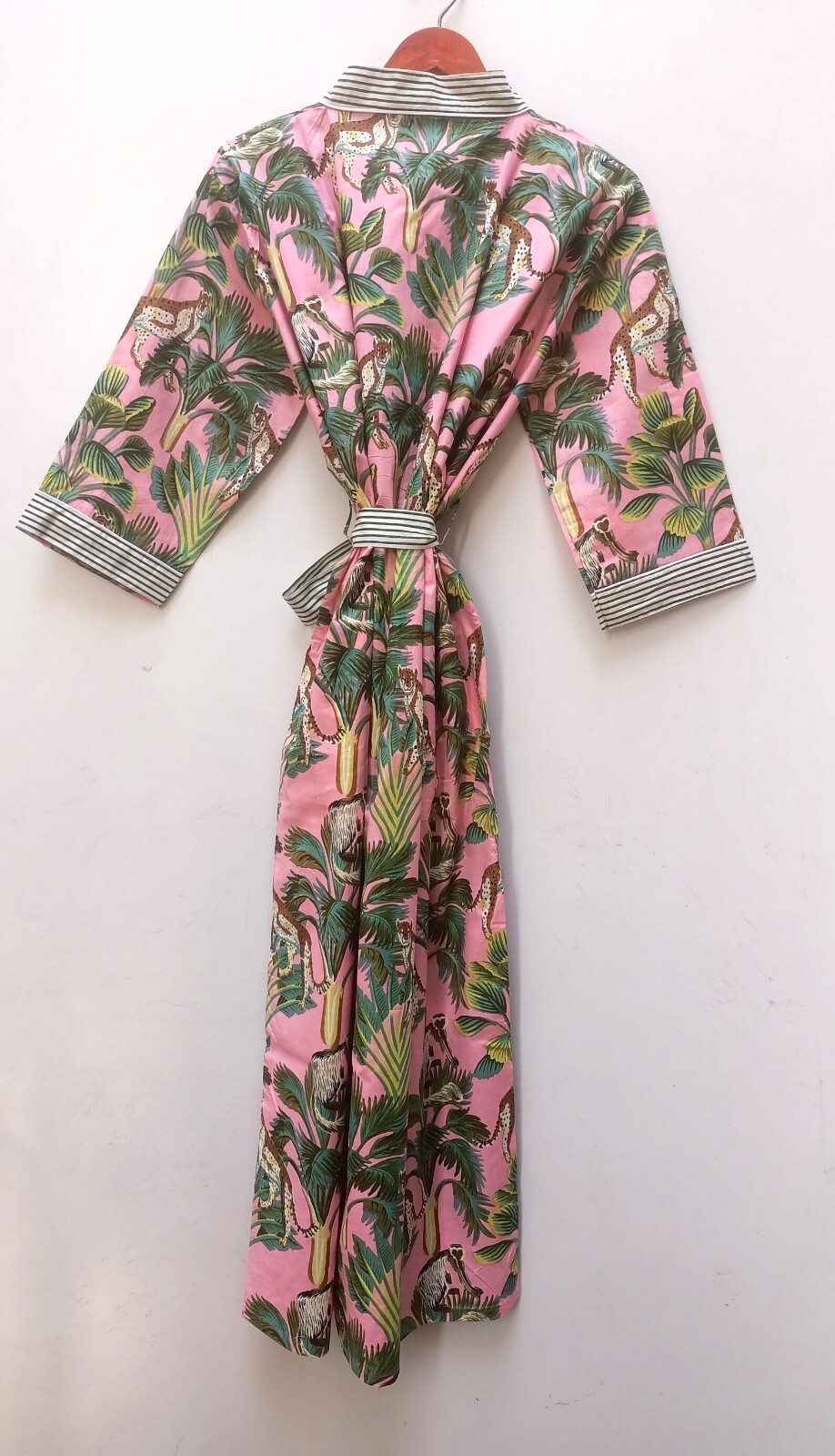 как выглядит Indian Cotton Robe Long Kimono Sleepwear Peach Floral Printed Night Kimono Robe фото