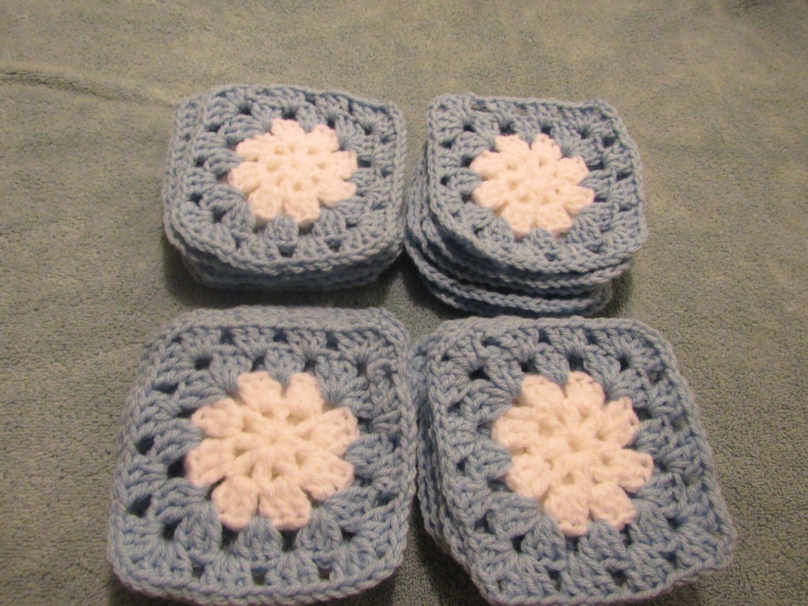 Lot of 20 5 Light Blue Crochet Granny Squares Blocks Afghan