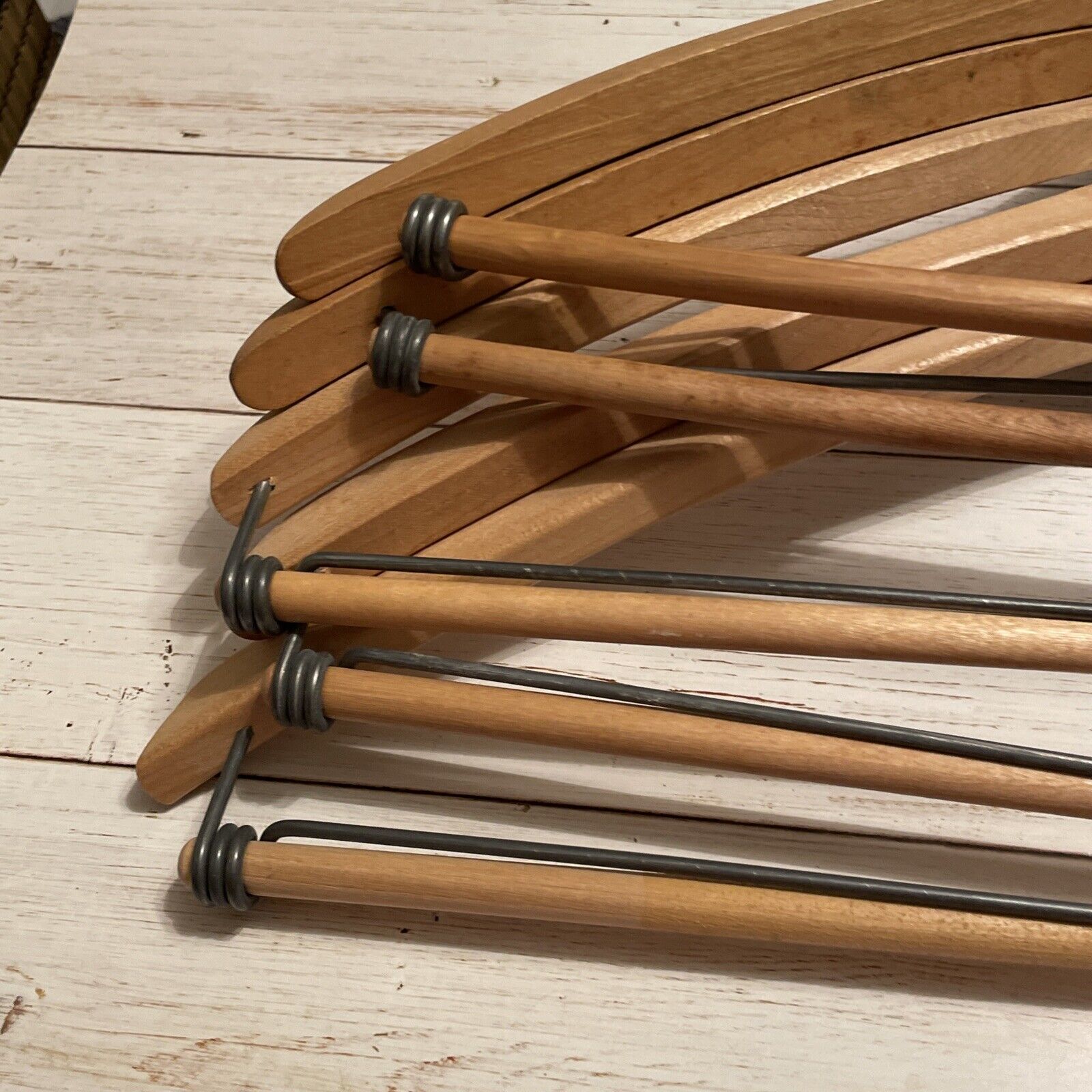 как выглядит Vintage Wood Clothes Suit Pant Hanger Wishbone Advertising/Blanks Lot Of 5 фото