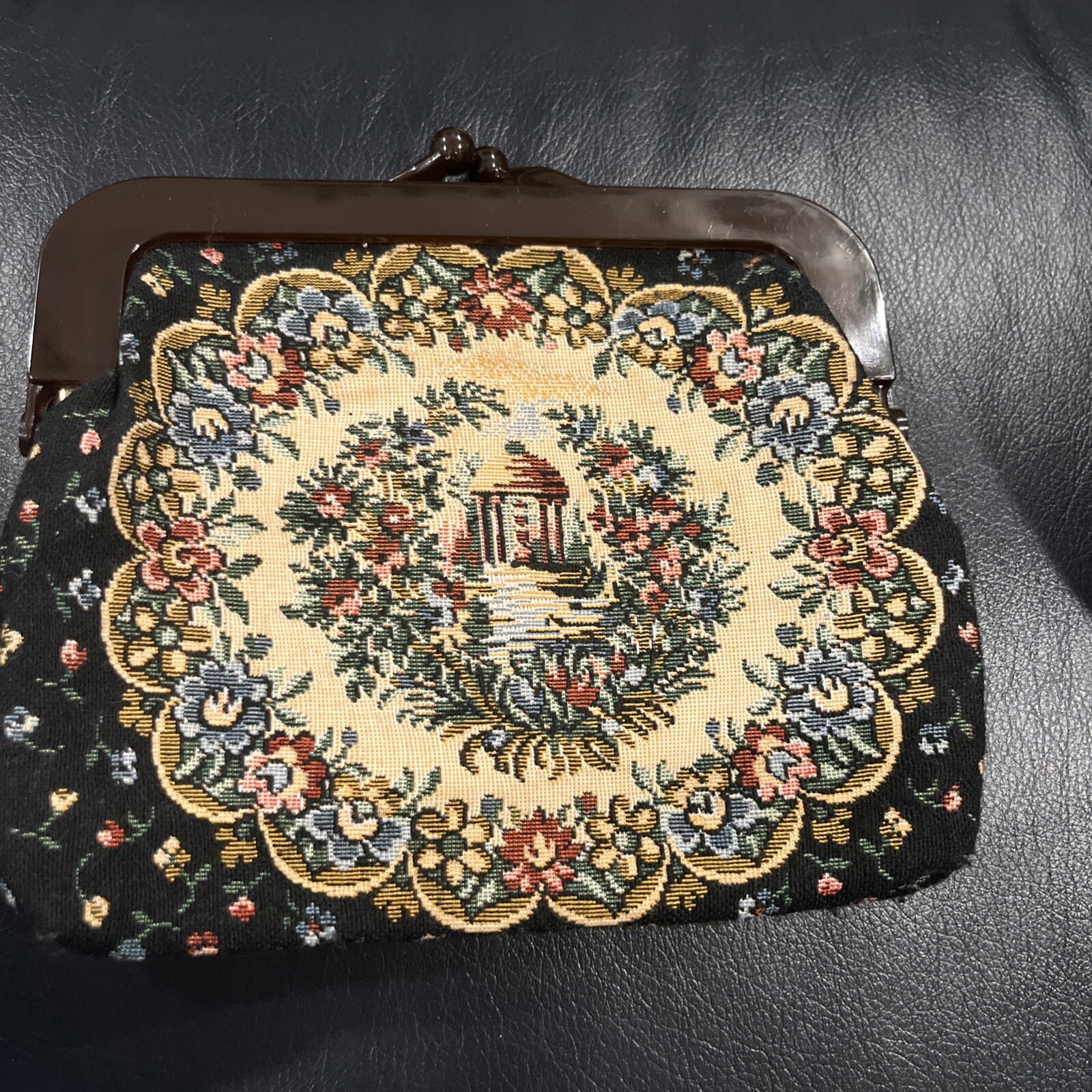 как выглядит Vintage Tapestry Clutch, Brown Bakelite Snap Close, La Tegal LTD, Hong Kong фото