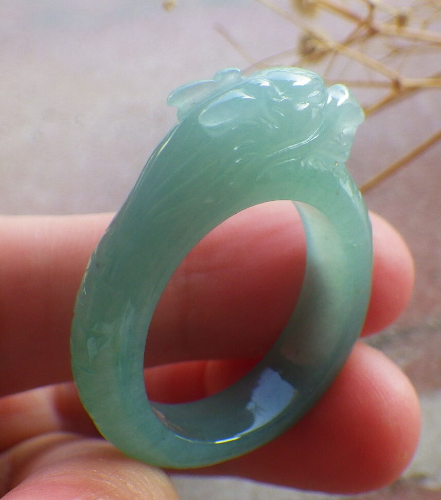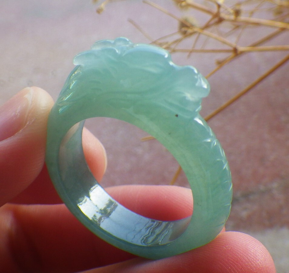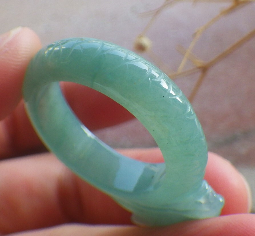 как выглядит Certified Icy Blue Water Green A JADE Jadeite Dragon RING USA 11.25  688206 AS фото