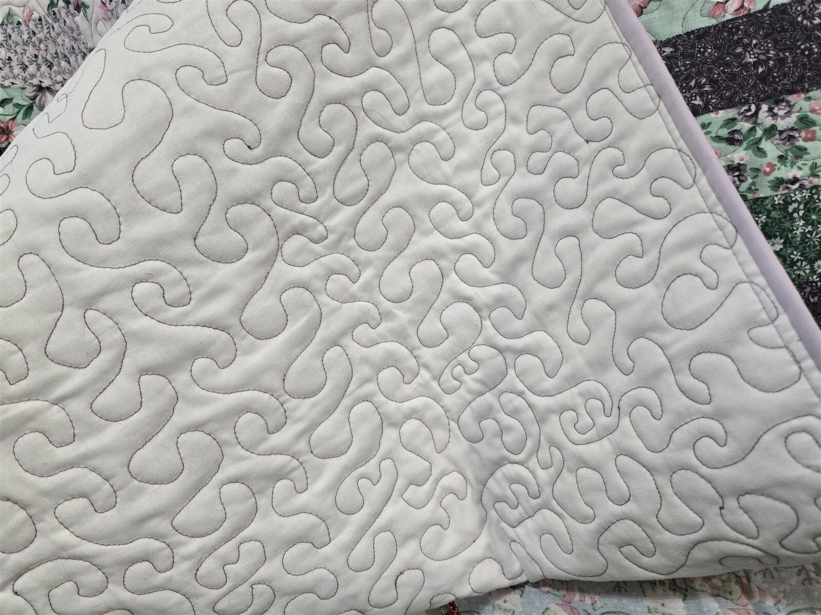 как выглядит Hand Made Baby Quilt Lap Quilt Lavender, Purple, Pink, Green, Floral 34.25 x 45 фото