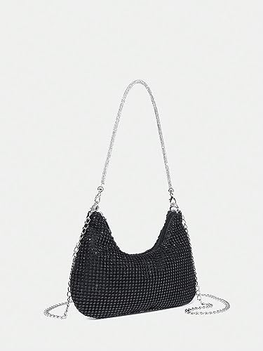 Women's Rhinestone Clutch Purses Wedding Shiny Evening Bags One Size Black