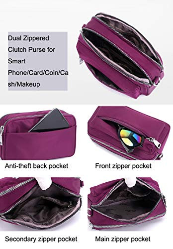 Multi-Zipper Crossbody Handbag Purse, Women's Nylon Wristlet Mini Grey
