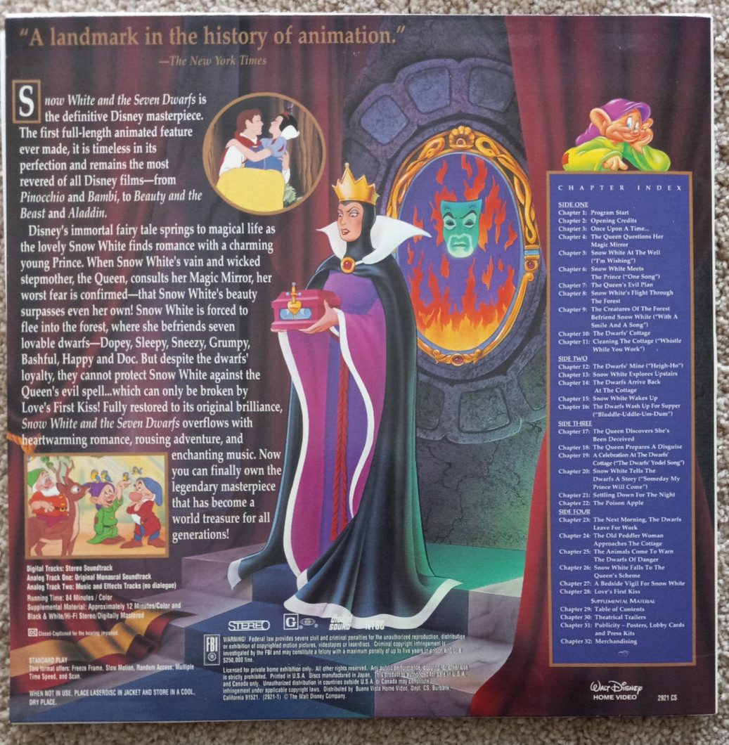 Walt Disney Snow White and the 7 Dwarfs CAV Laserdisc Boxset Book Lithographs