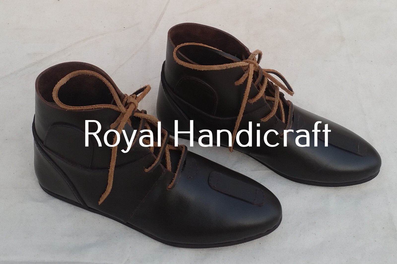 Medieval Classic Leather Lace Boots pair dark brown color new