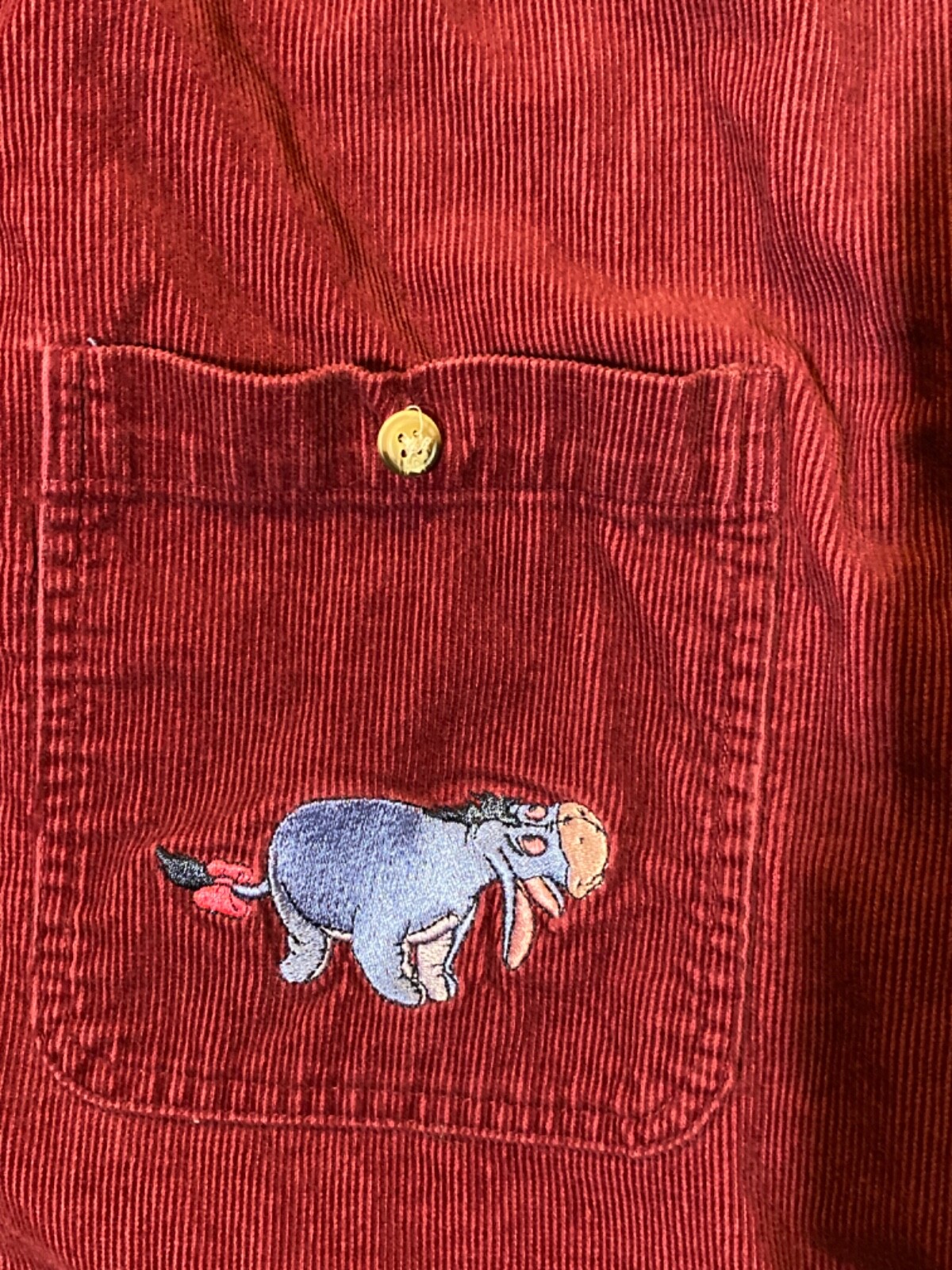 как выглядит Disney Winnie The Pooh Shirt Womens XL Corduroy Button Up Embroidered Vintage 90 фото