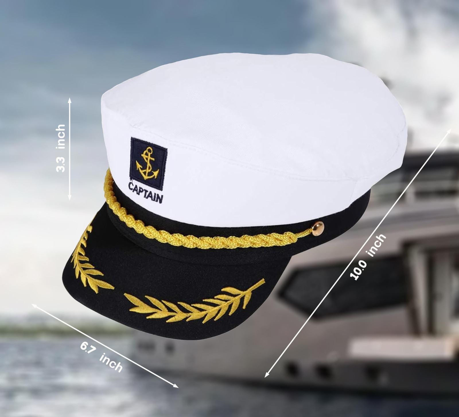Captain Hat Sailor Skipper Cap Marines Style Costume Accessory Adjustable Yac
