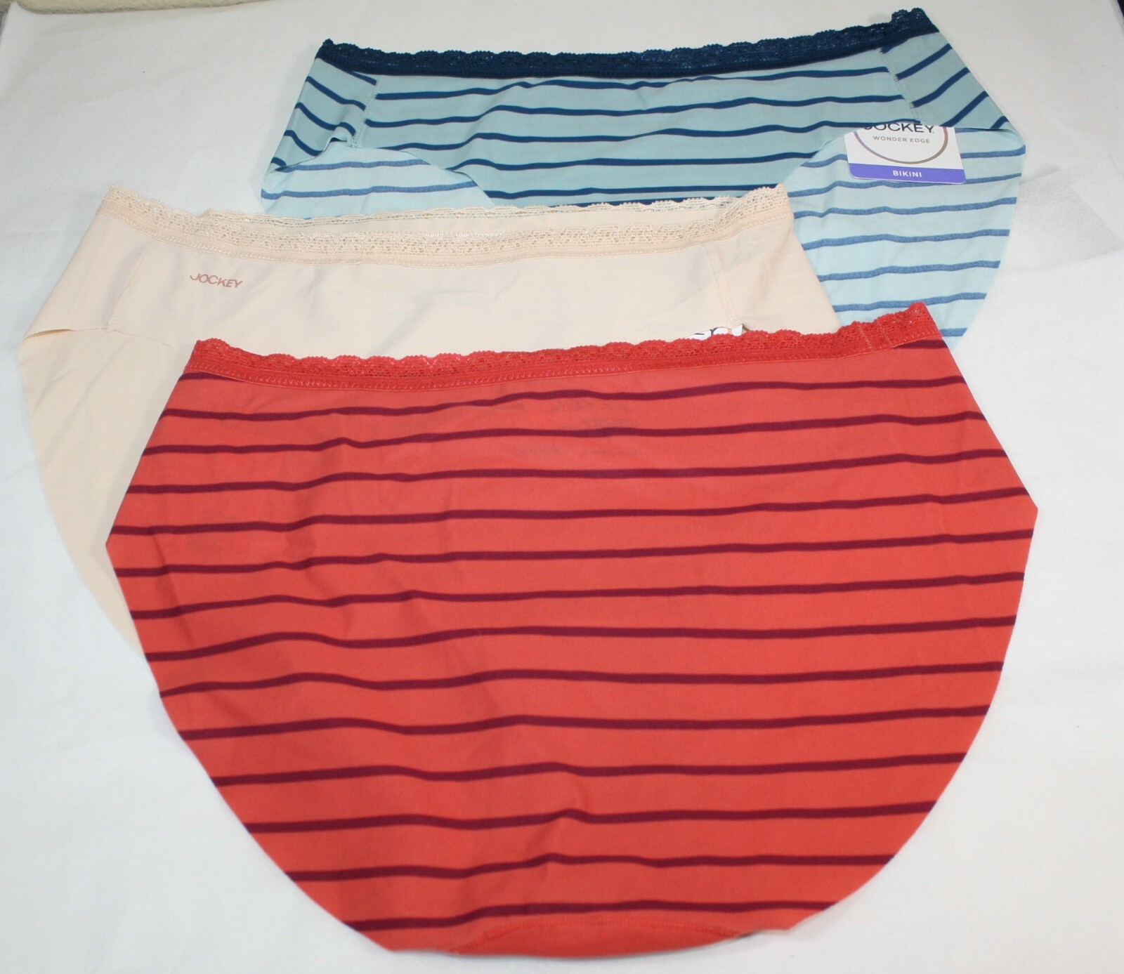 NWT set of 3 JOCKEY WONDER EDGE 10995 BIKINI BEIGE ORANGE BLUE STRIPES L
