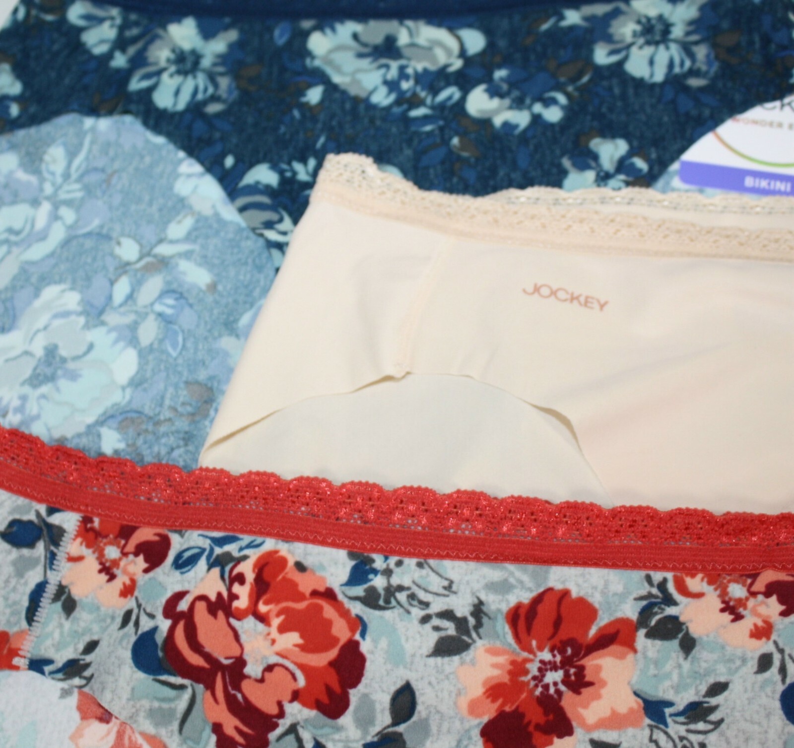 как выглядит NWT set of 3 JOCKEY WONDER EDGE 10995 BIKINI BEIGE ORANGE BLUE FLORAL M фото