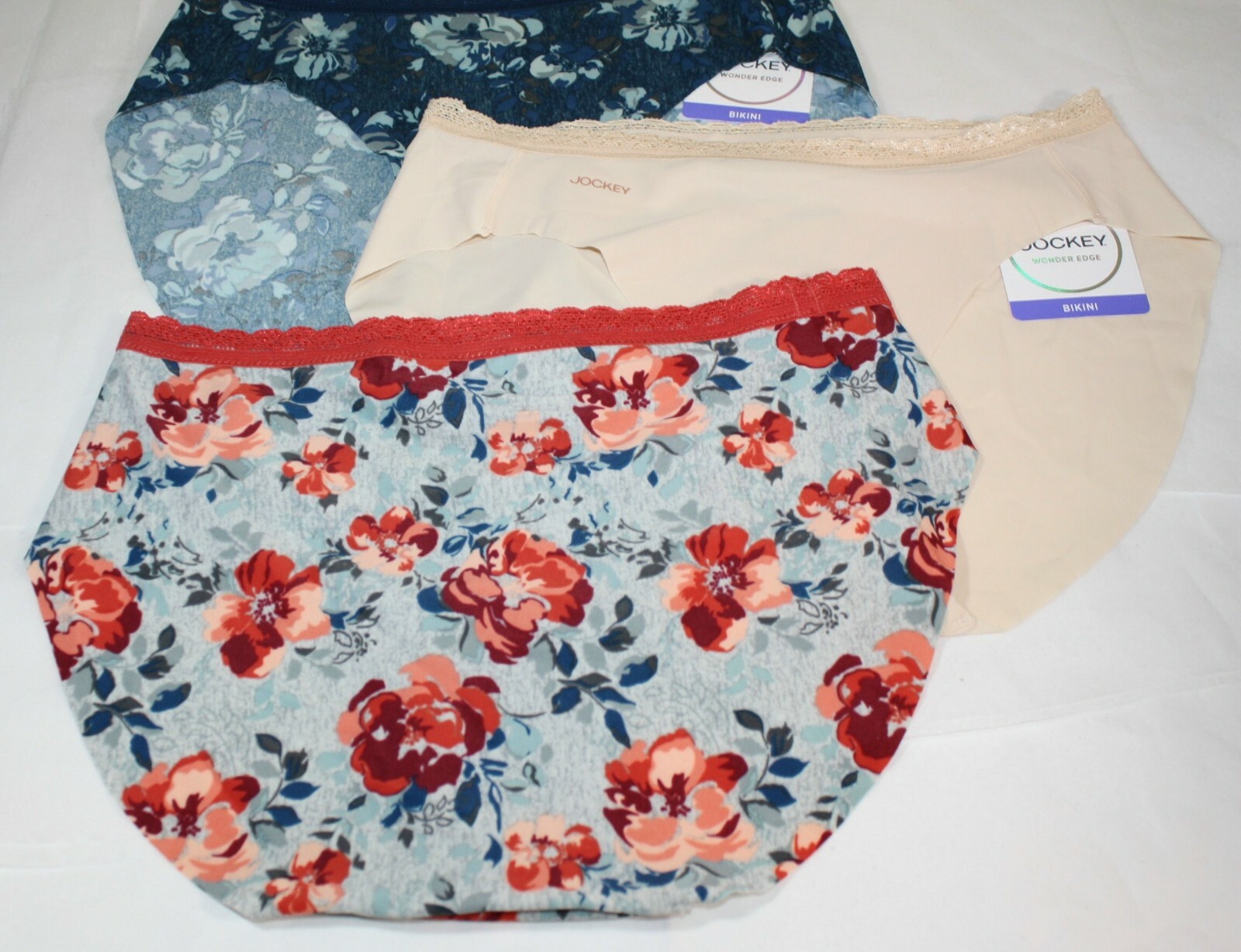 NWT set of 3 JOCKEY WONDER EDGE 10995 BIKINI BEIGE ORANGE BLUE FLORAL M