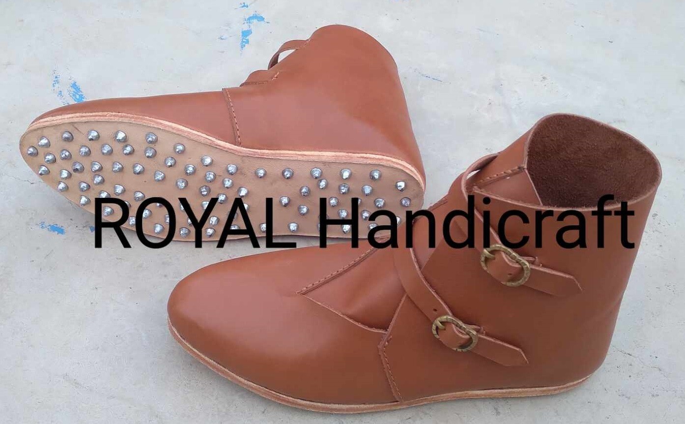 Medieval Leather Buckle up boot pair Brown Color Leather Boot Footwear Pair New