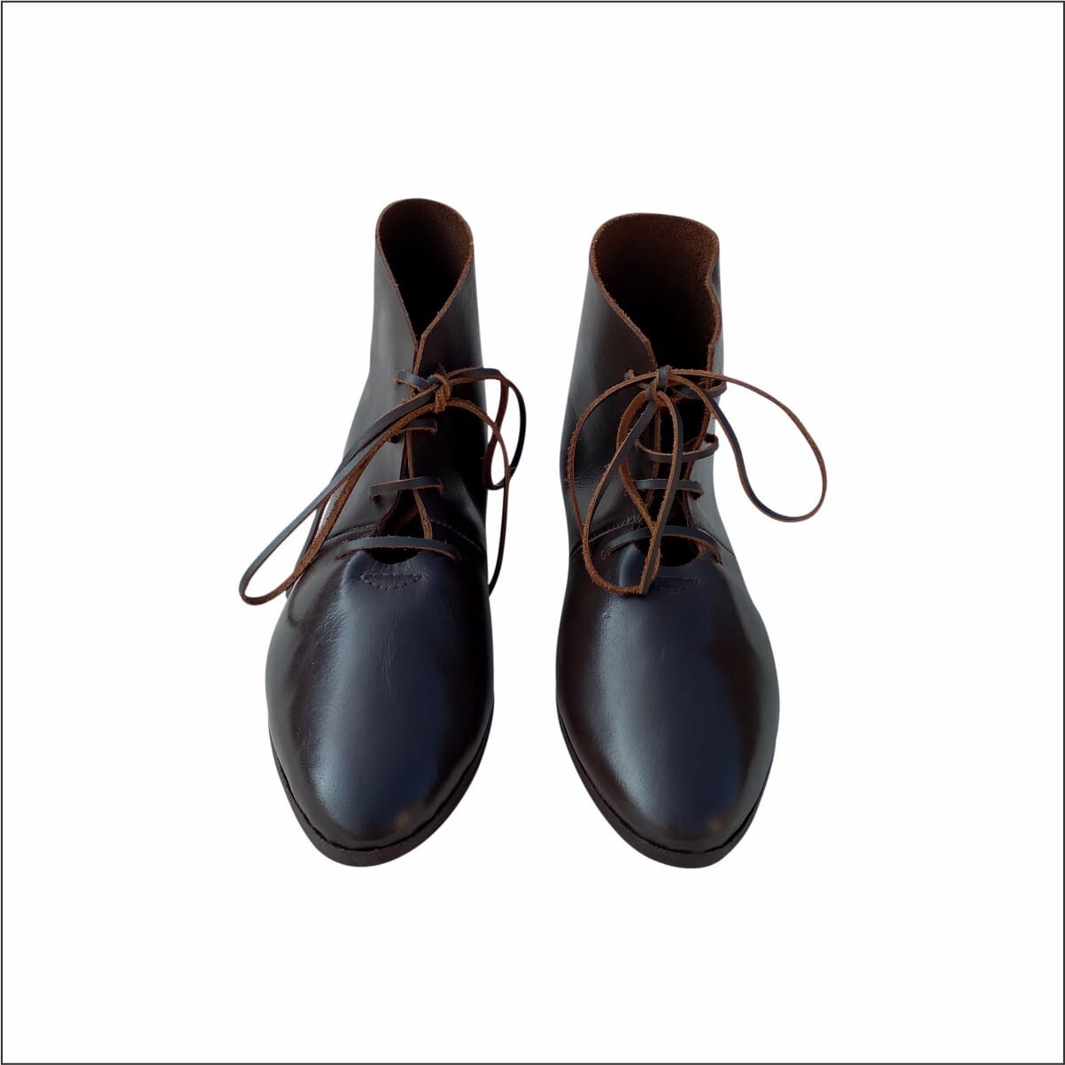 Medieval Lace up leather boots pair Dark brown leather lace boot footwear pair