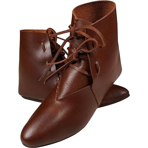 как выглядит Medieval leather lace boots pair Brown color leather lace boot footwear pair new фото