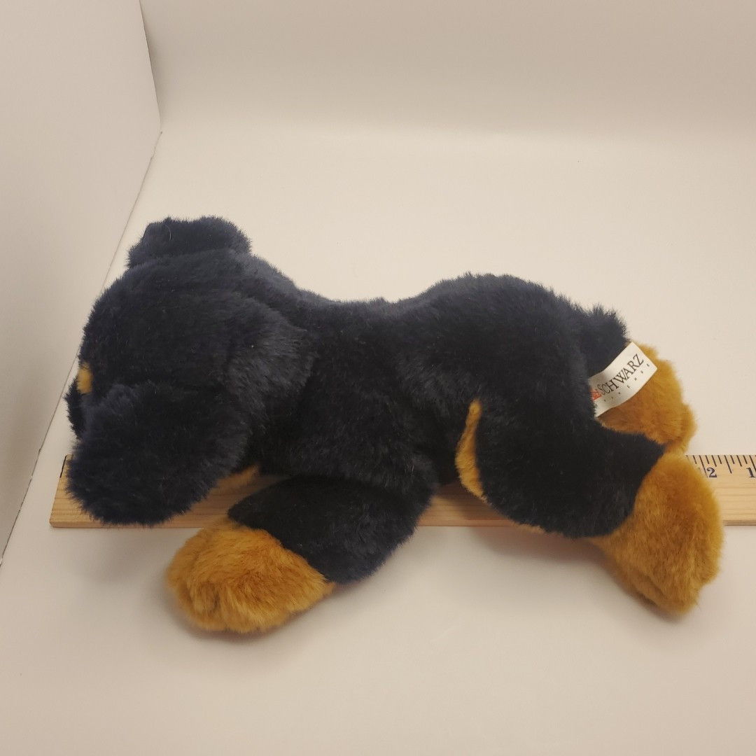 как выглядит FAO Schwarz ROTWEILLER Puppy Dog Black Brown Floppy 11in Soft Fur Laying Plush фото