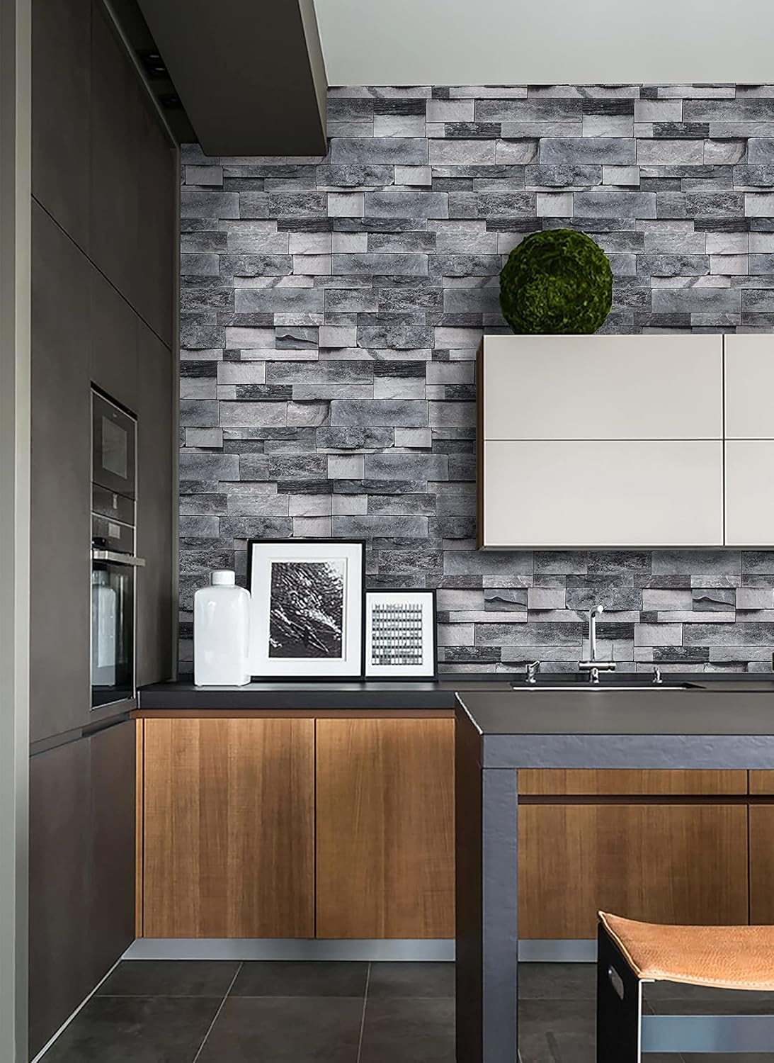 Grey Brick Wallpaper Peel and Stick Wallpaper Stone Wallpaper 17.7 X 118 Sel