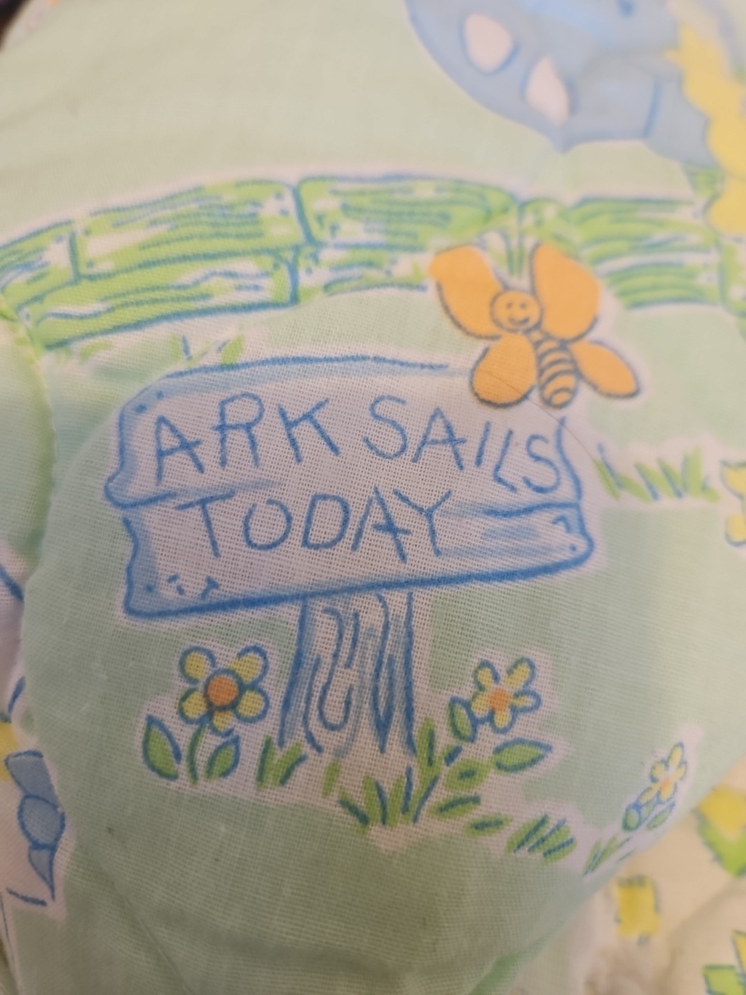 Vintage 70s Baby Crib Comforter Blanket Noah's Ark Animals Mint Green Animals