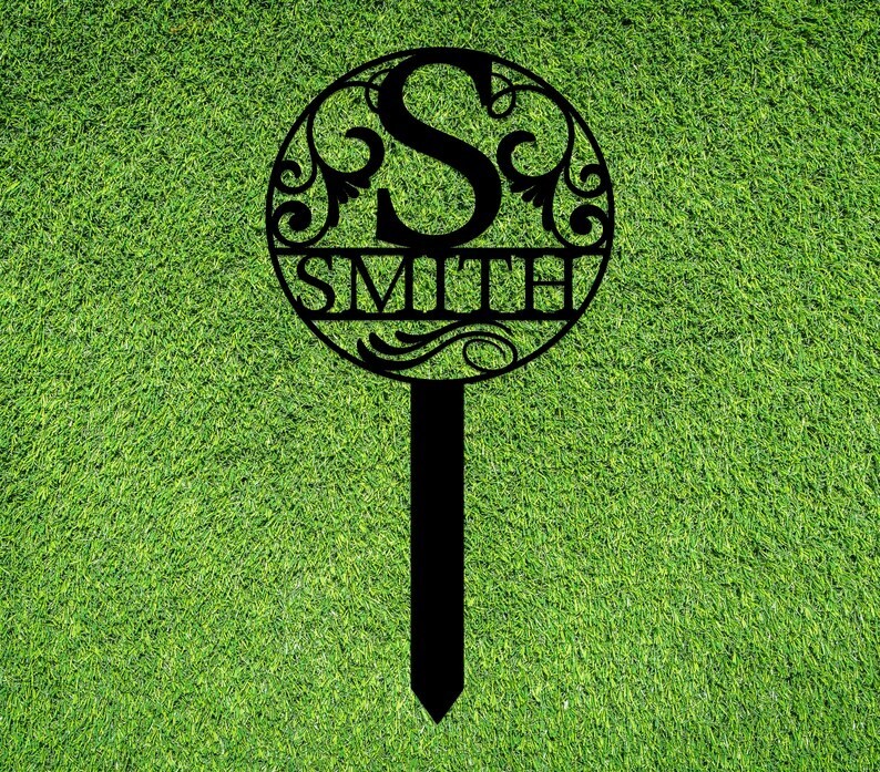 Custom Metal Letter and Name Sign, Round Letter Monogram Garden Stake