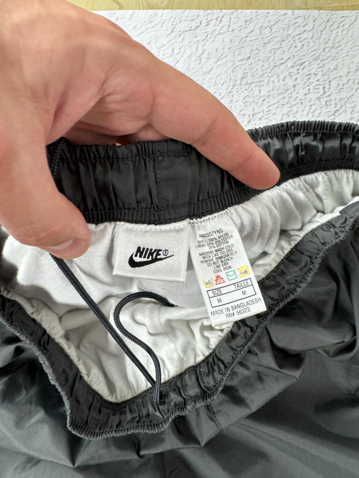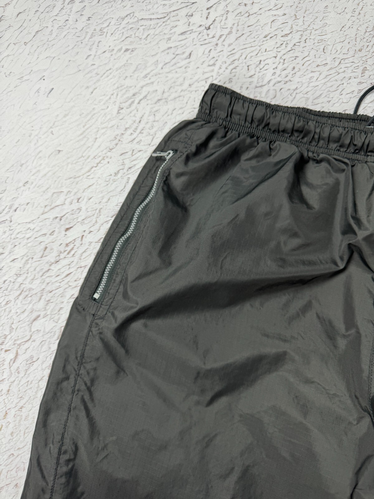 как выглядит Nike Vintage 90s black nylon shimmer logo swoosh track pants фото