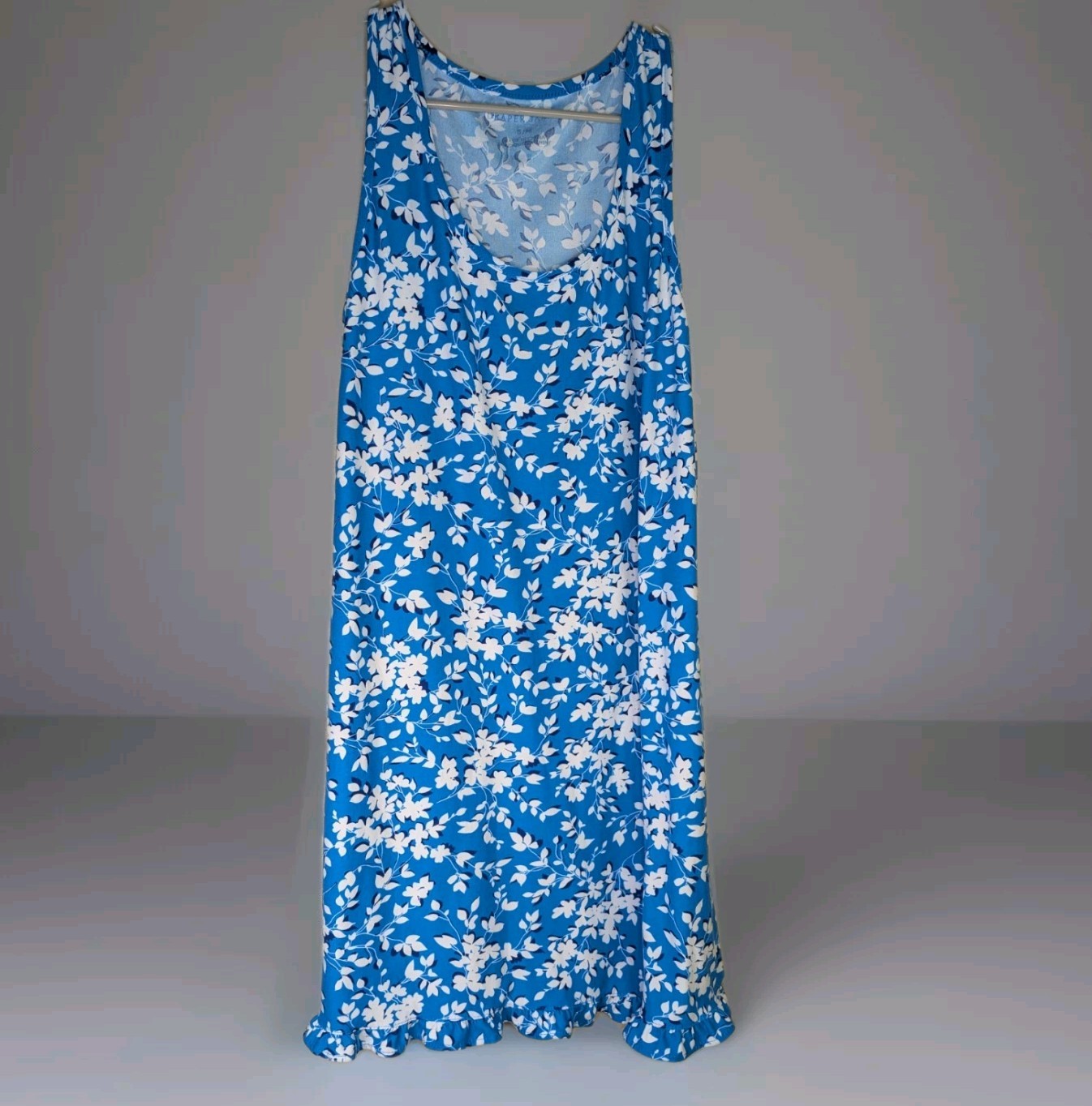 Draper James Ruffle Nightie Dress Pajamas Blue Shadow Floral sz S/M