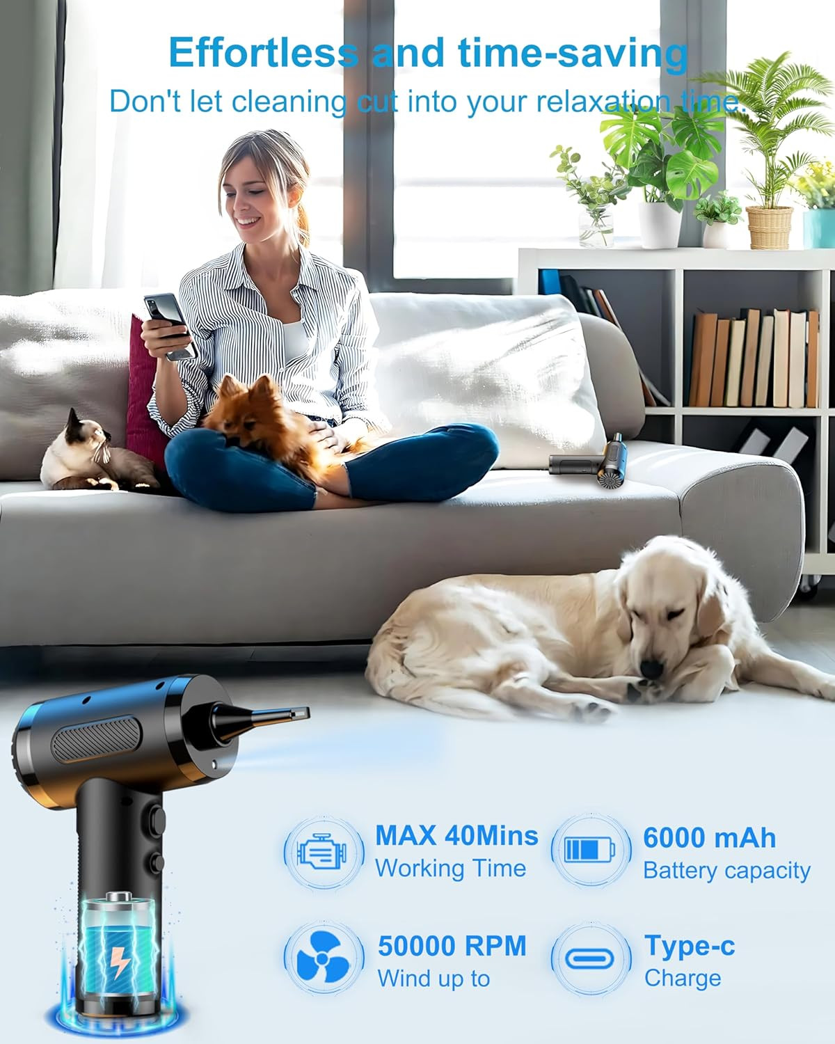 как выглядит Compressed Air Duster, Electric Air Blower Cleaner with LED Light for Computer, фото