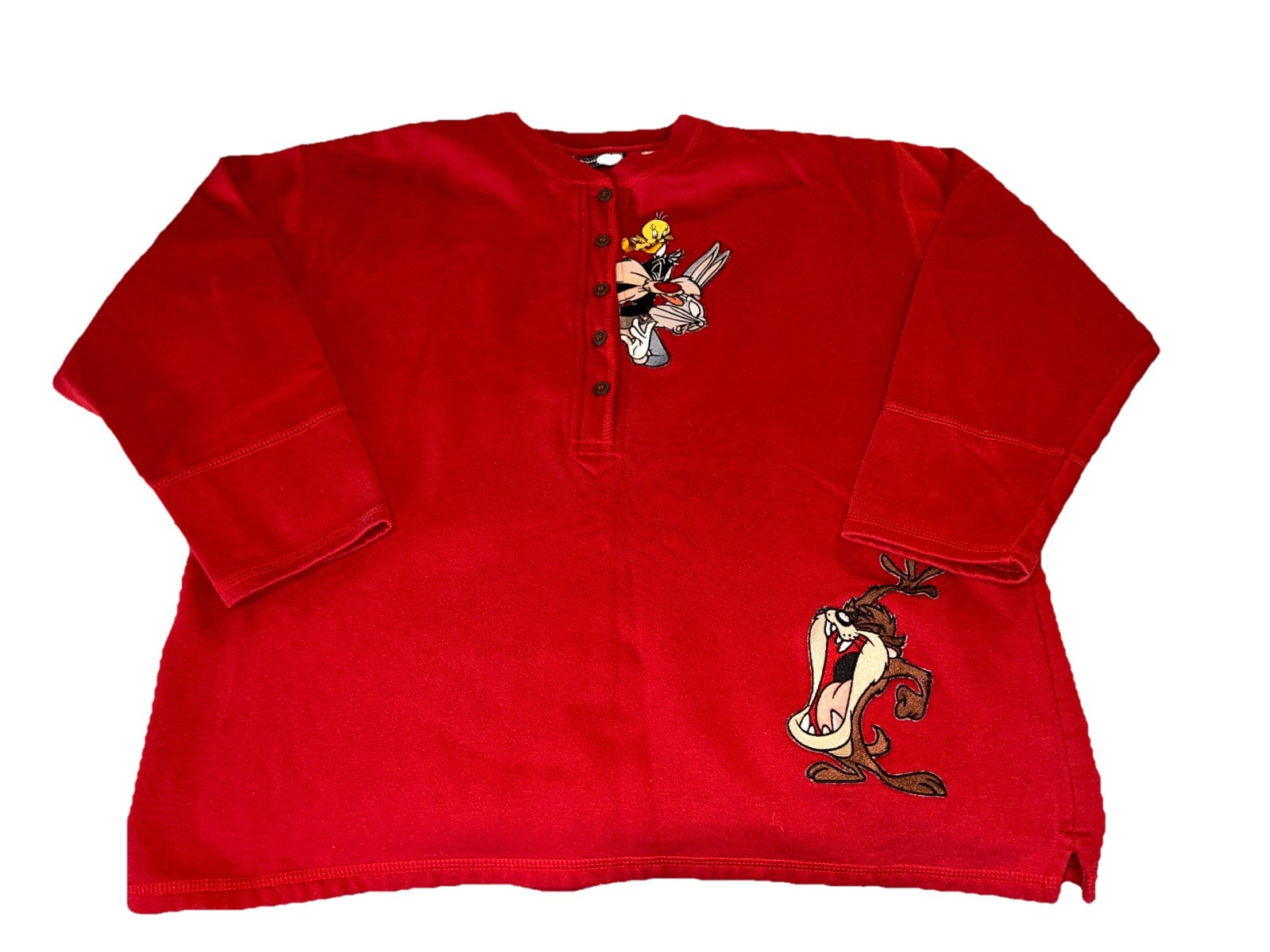 Vintage 1998 Warner Bros Looney Tunes Embroidered Red Sweatshirt Large