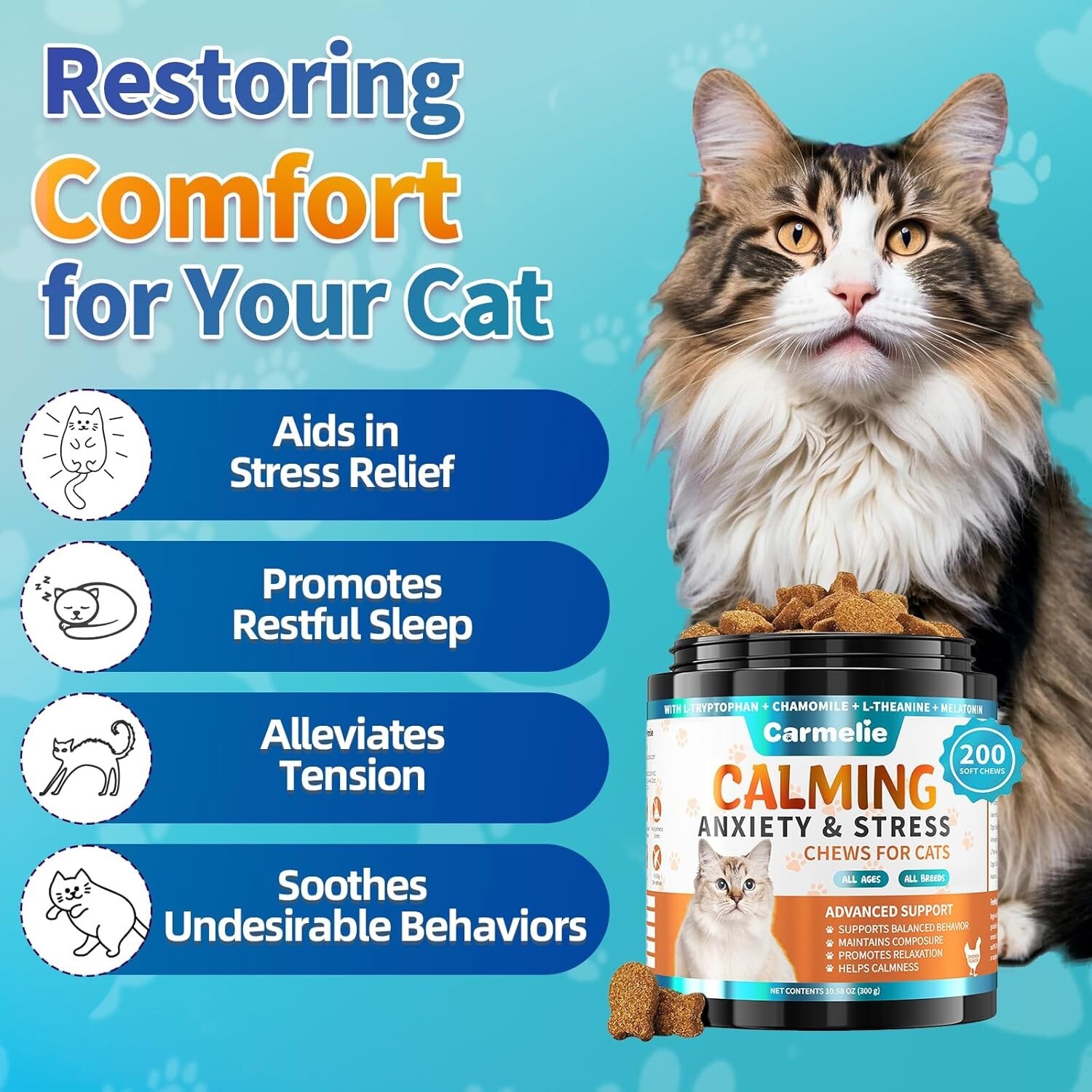Hemp Calming Cat Treats 200ct - Natural Anxiety Relief W/ Melatonin Chamomile