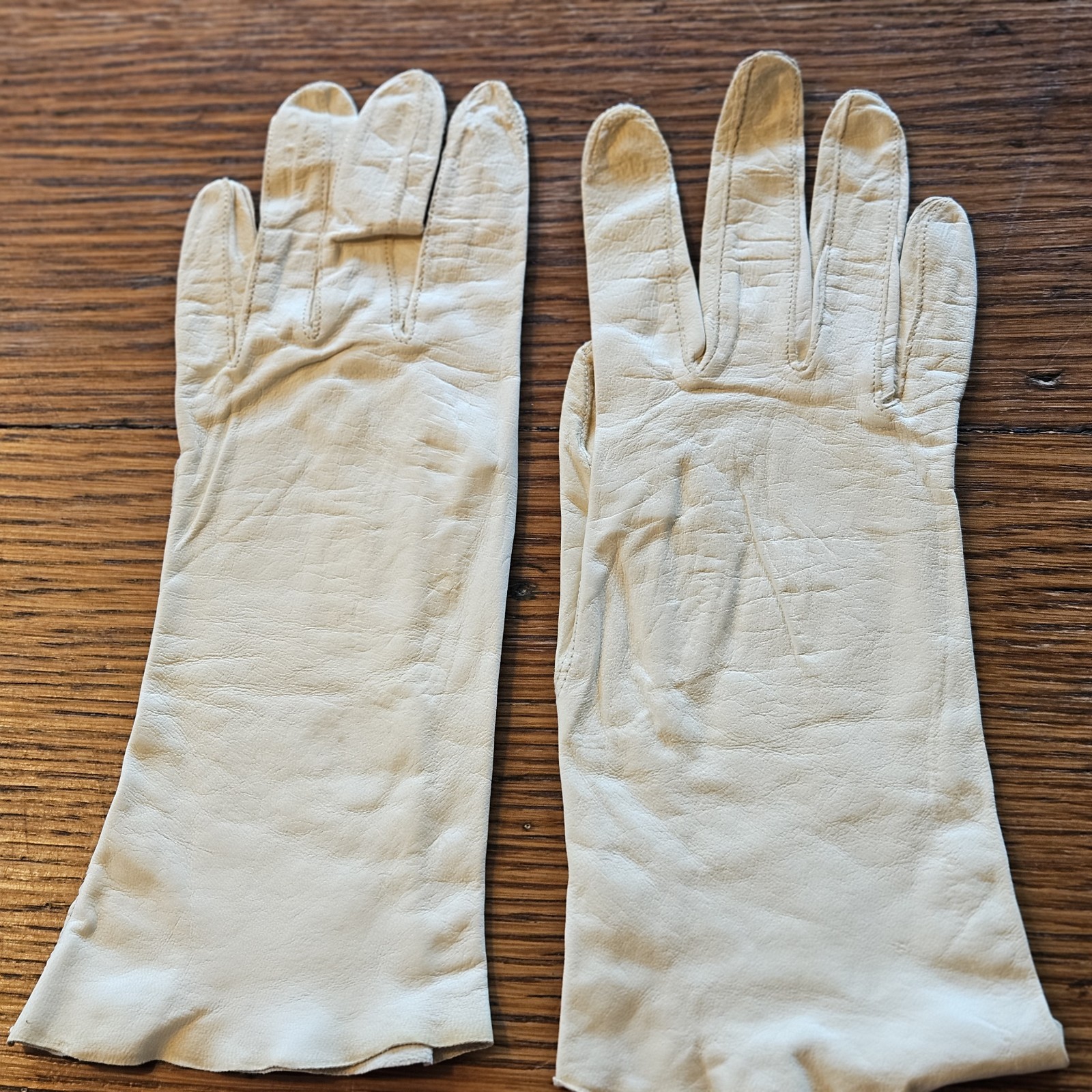как выглядит Lot Of 2 Vintage Leather Driving Gloves Women s Ivory cream Size 6 1/2. фото