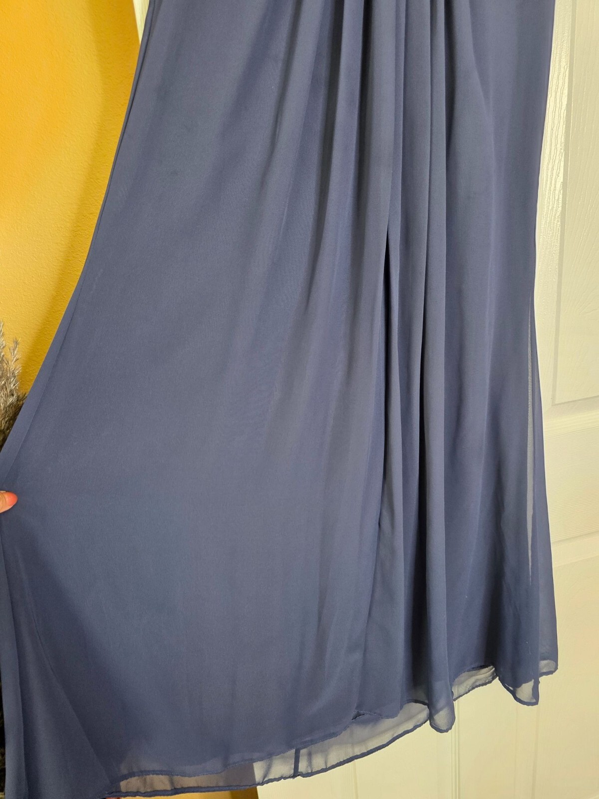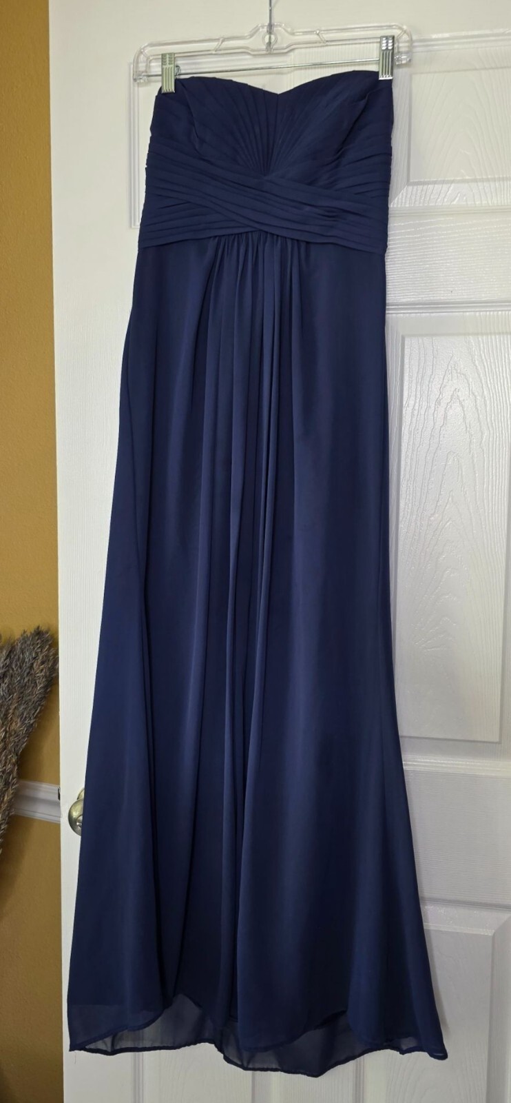 Davids Bridal Bridesmaid Bra Top Dress Size 2 Dark Blue Back Zip Maxi Prom 63