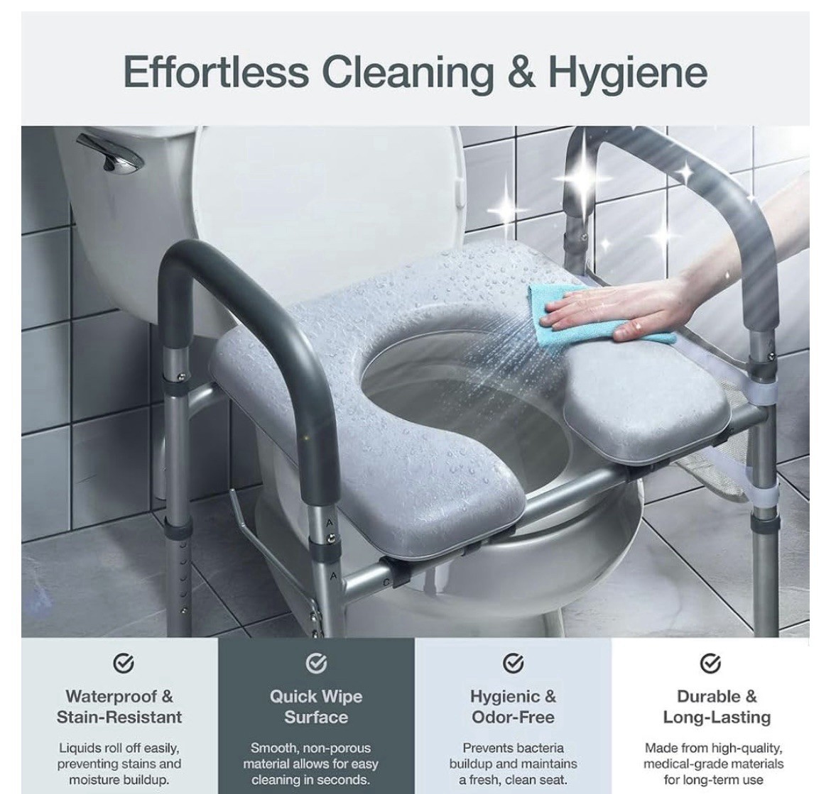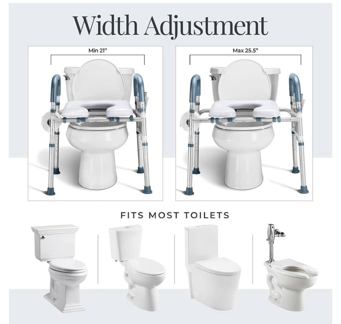 Raised Toilet Seat with Handles, Adjustable Height Width, Cozy Padded 400 lbs