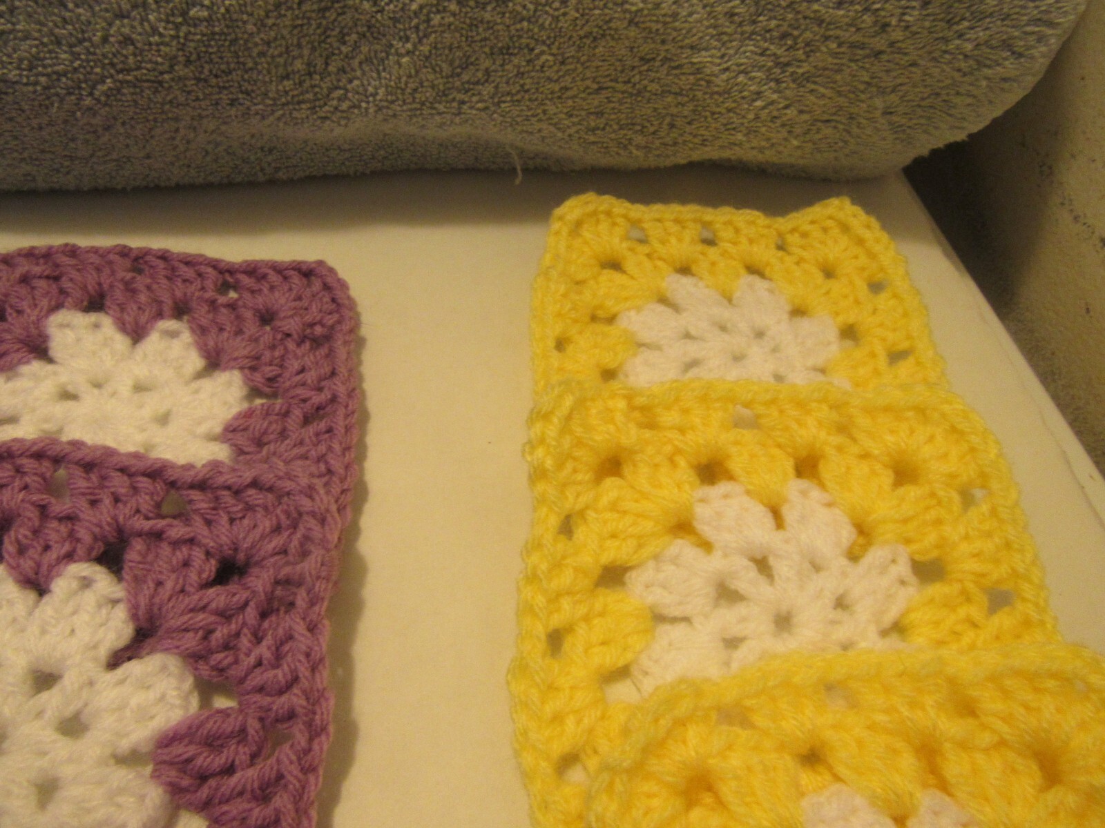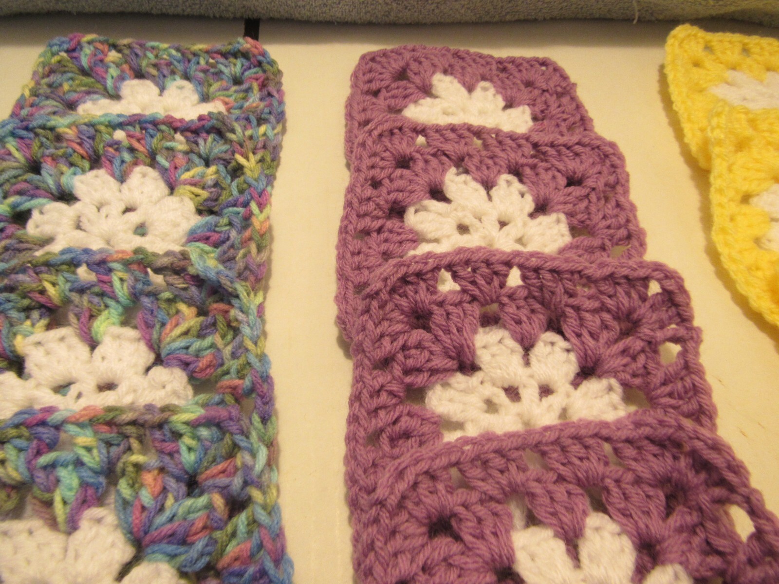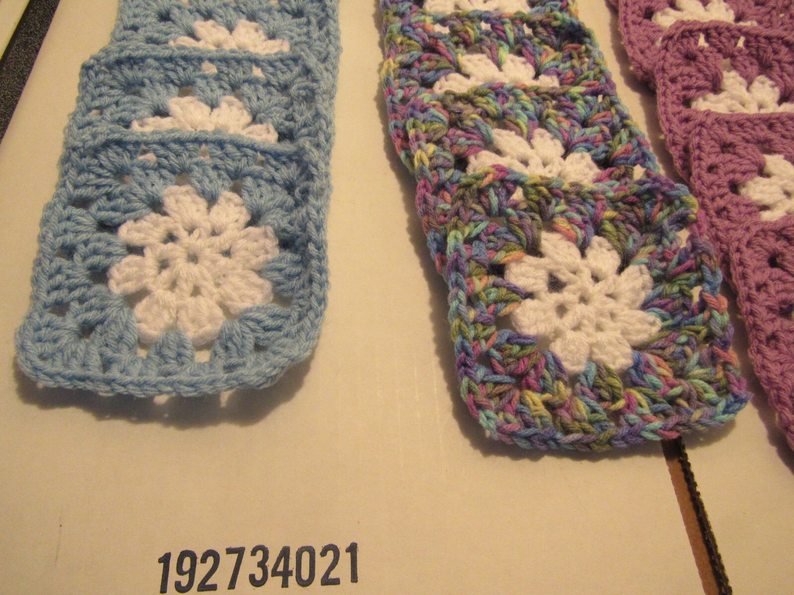 Lot of 20 5 Crochet Granny Squares Blocks, Floral Pattern, Blue, Purple, etc.