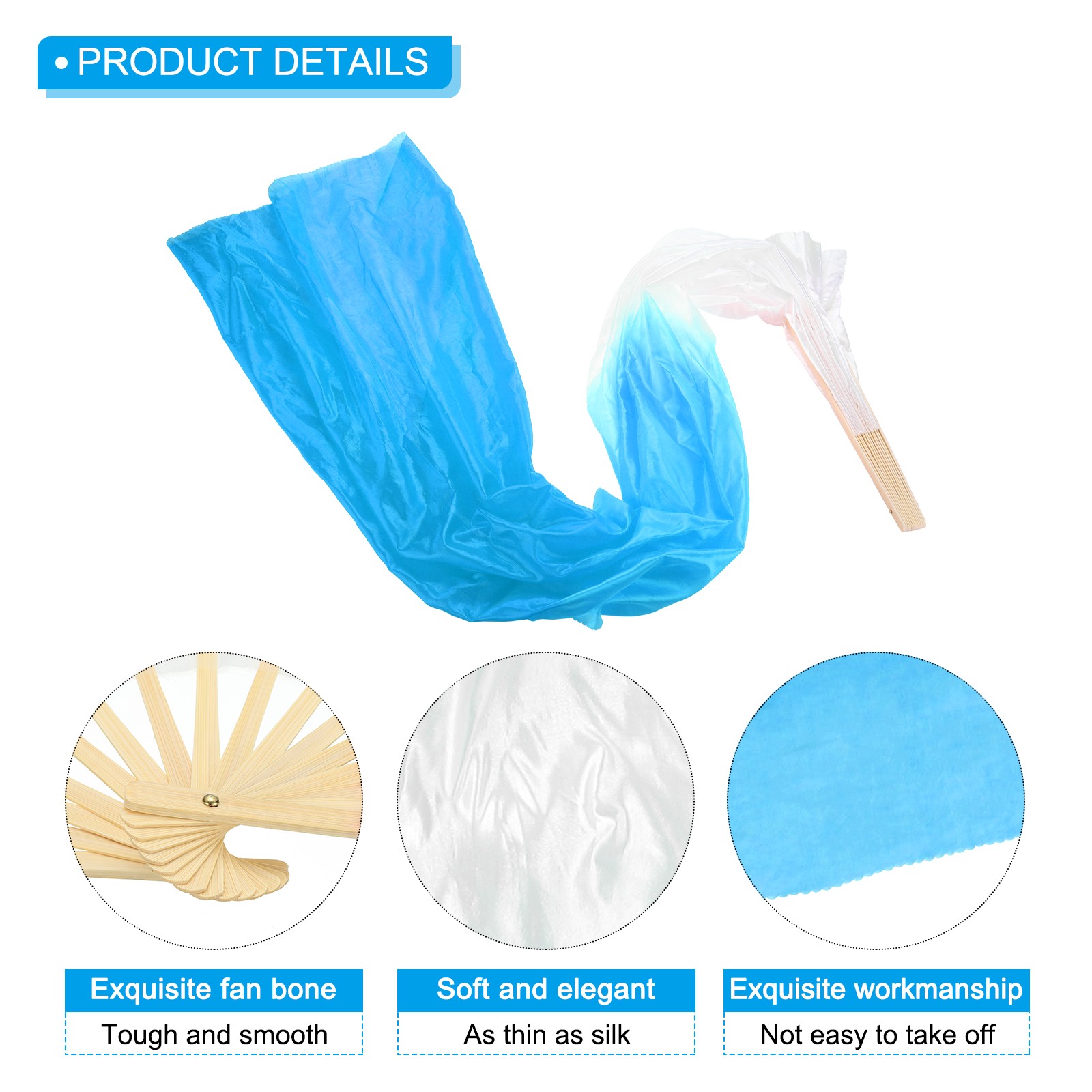 как выглядит 1 Pair 16 Fan Folding Belly Dance Silk Fan Veil 59", White Gradient Lake Blue фото
