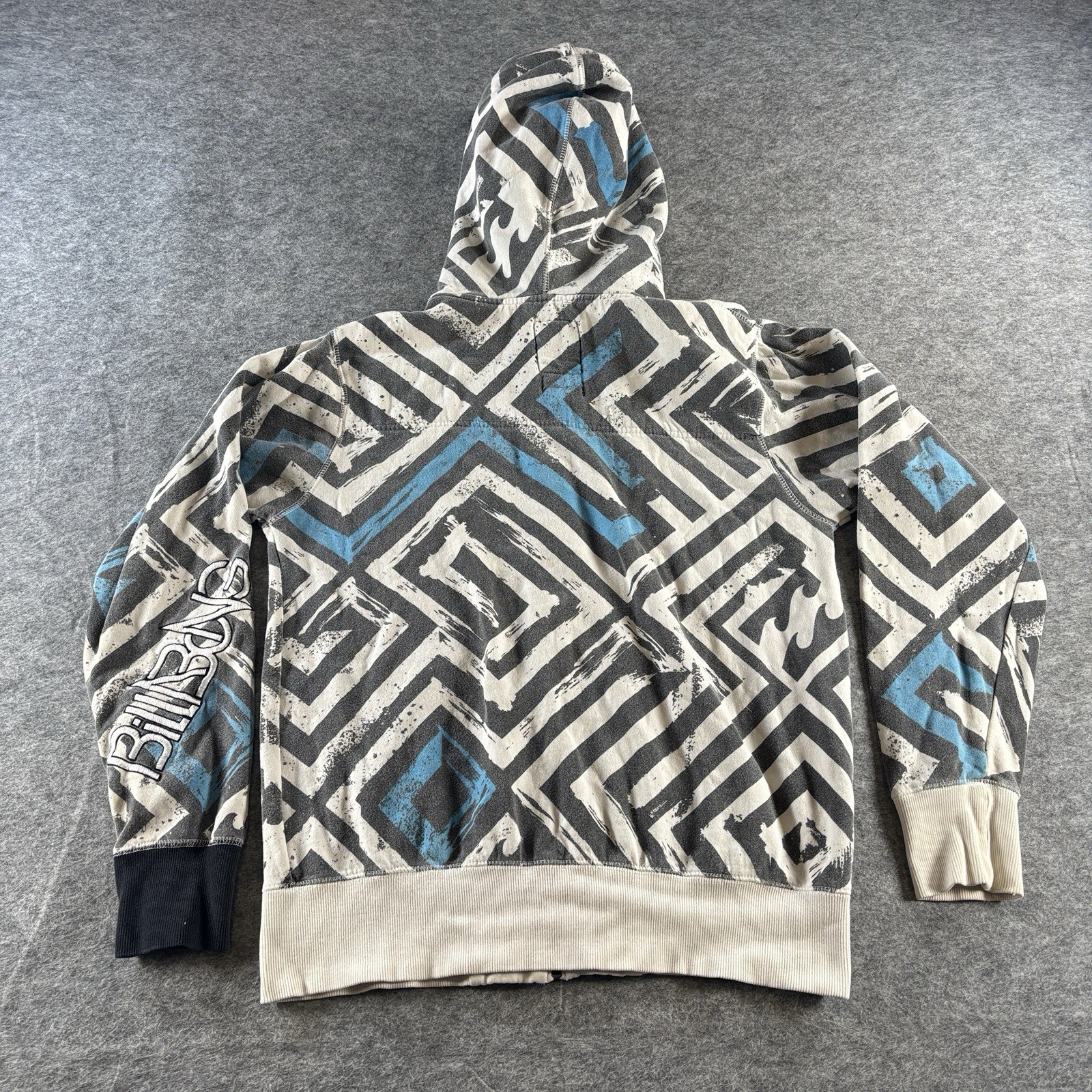 Y2K Billabong Full Zip Hoodie Mens Medium Sweatshirt All Over Print Face Cover