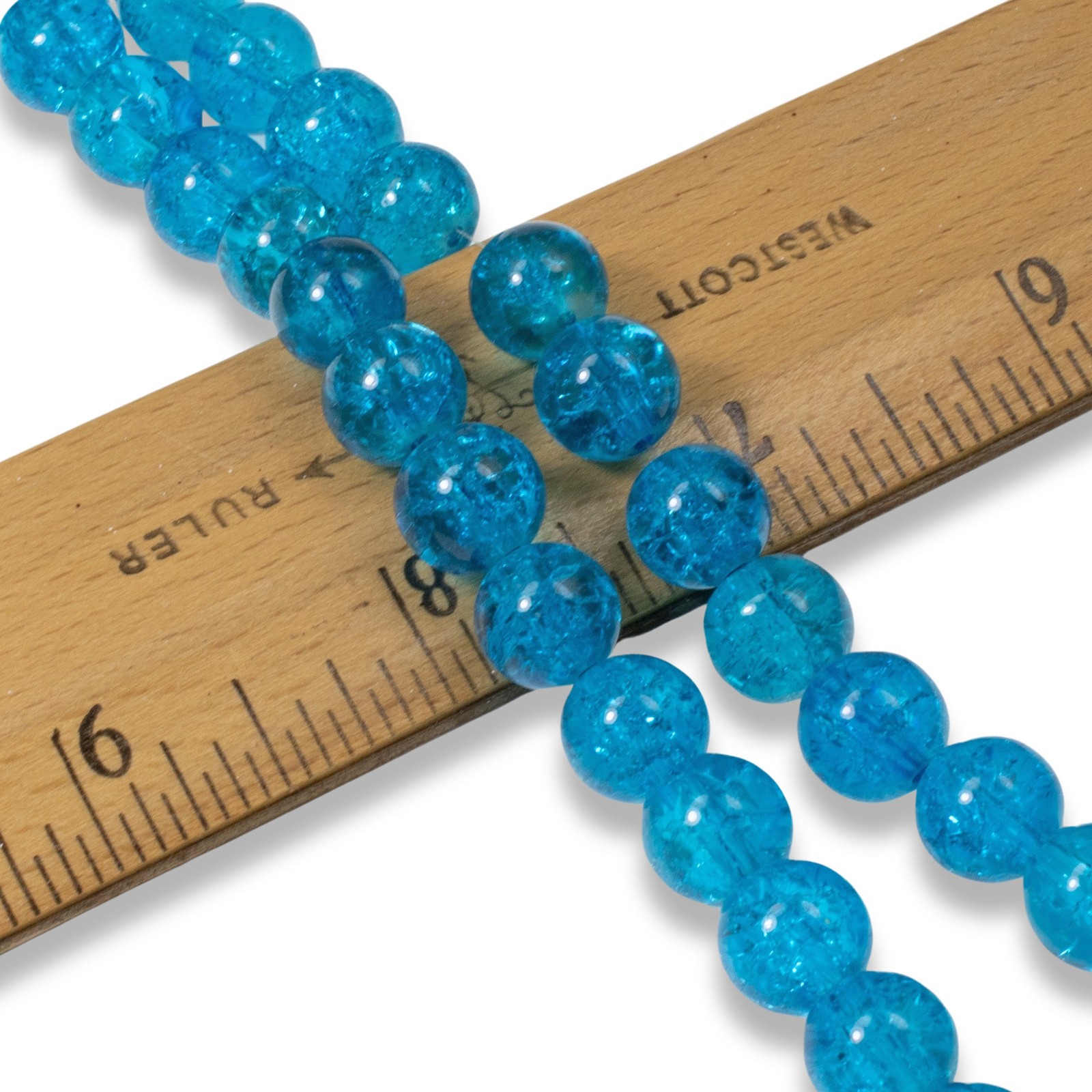 30 Aqua Blue 10mm Round Glass Crackle Beads, Perfect for Handmade Jewelry Crafts