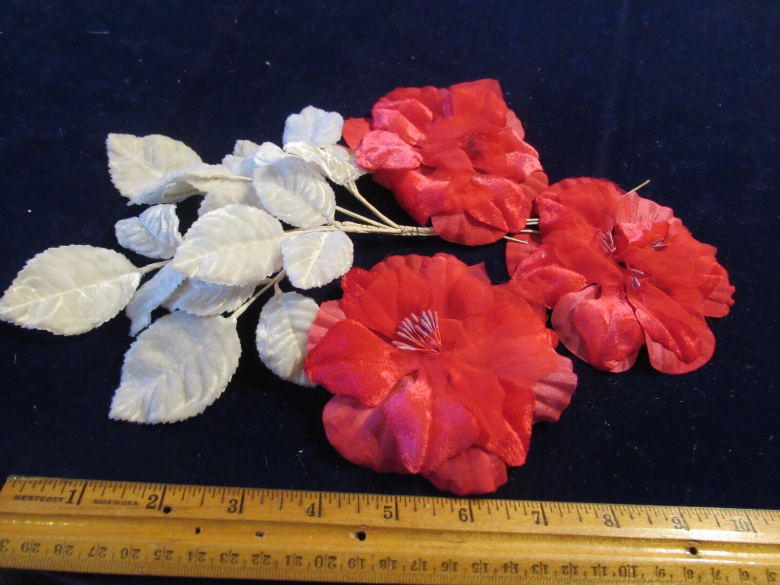 Vintage Millinery Flower Collection Rich Pink 4 Bloom w/White Velvet Leaf H5174