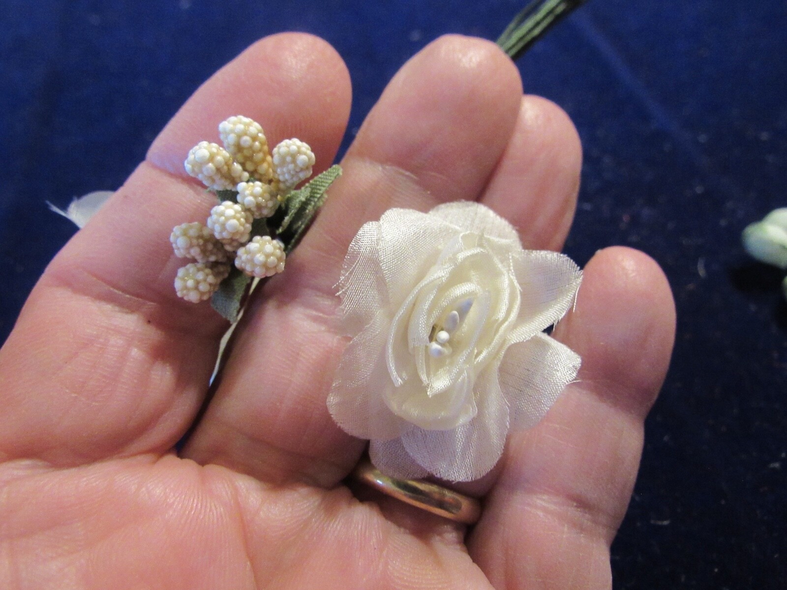Vtg Millinery Flower Collection Ivory Green Blossom Stamen Bud 1/2- 1 1/2 H5181