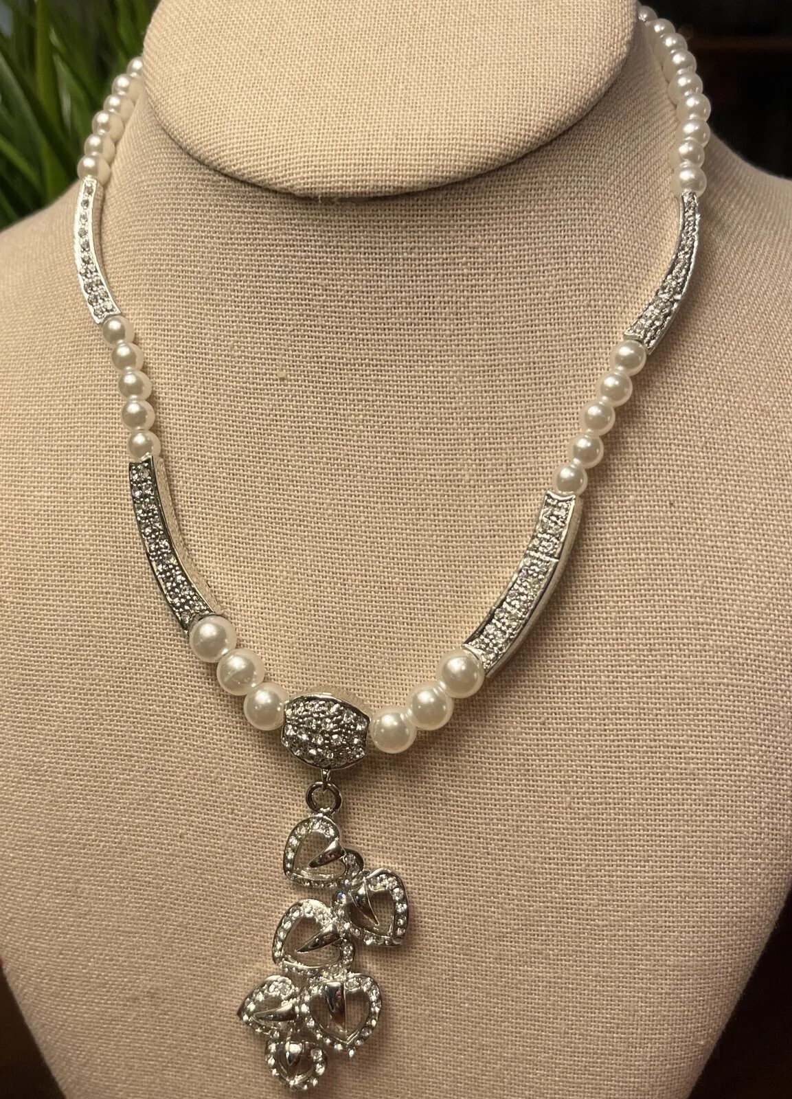 как выглядит Elegant Heart ShapedSilver Tone Faux Pearl Crystal Necklace Earrings Set фото