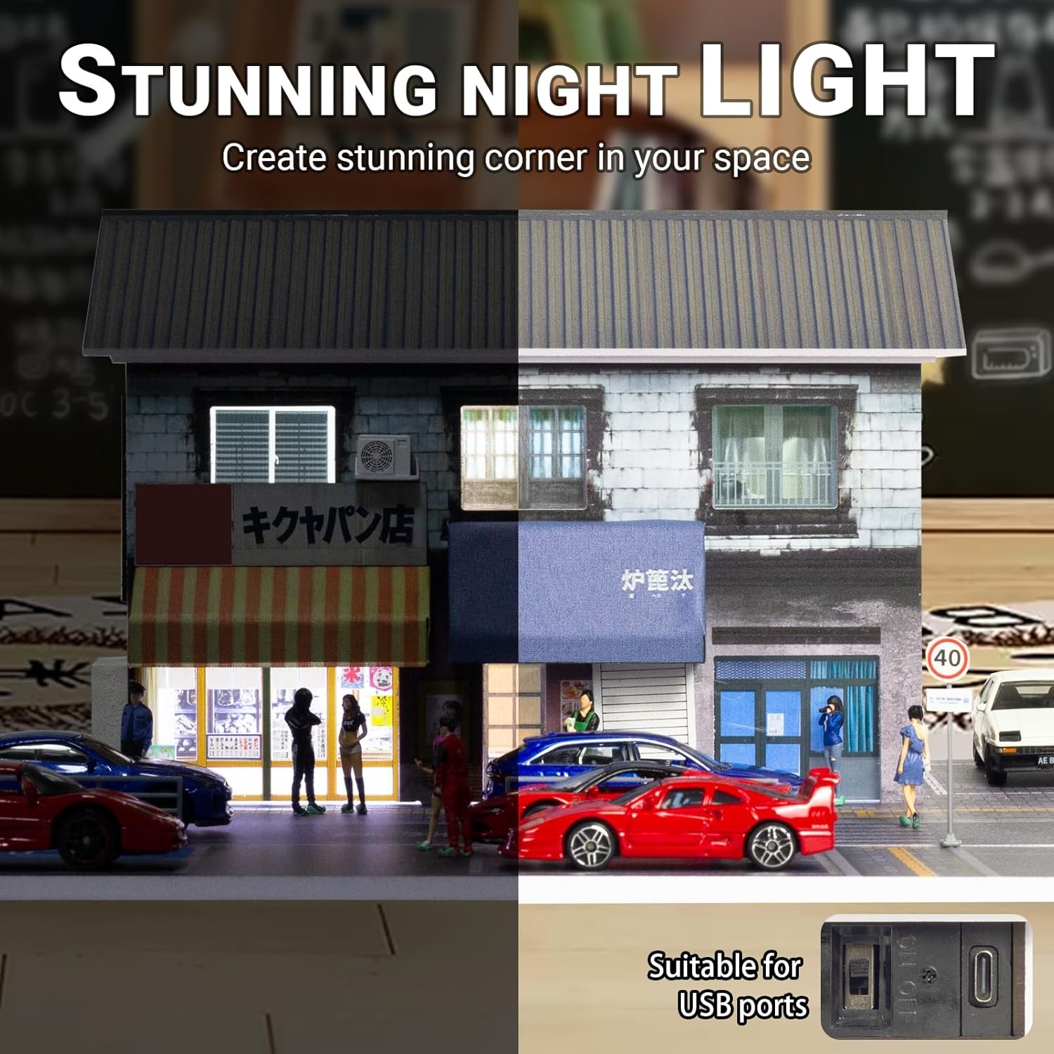 Diorama 1/64 Diecast Garage Model LED Lighting Parking Lot Display Case Scene US