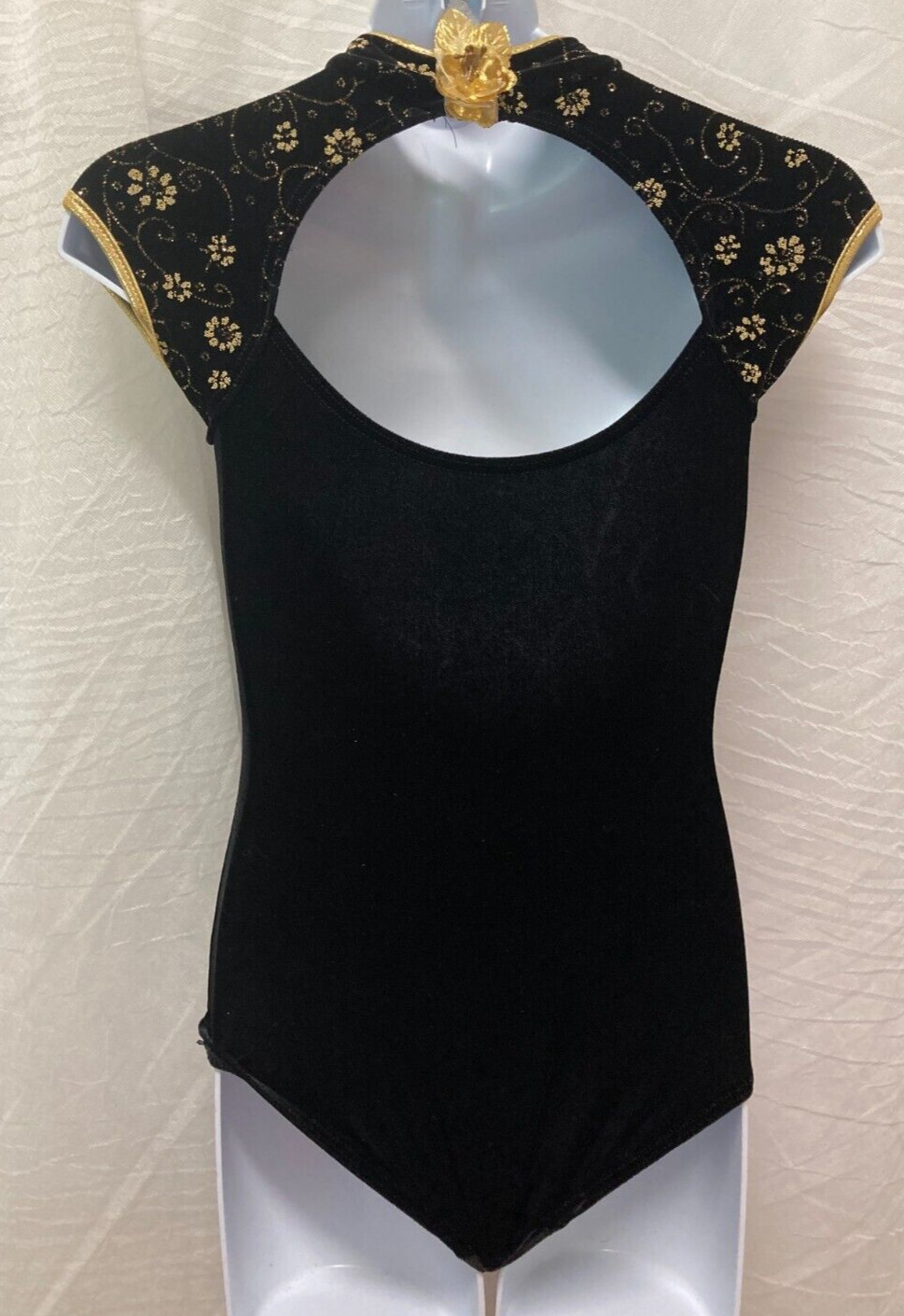 Asian inspired dance costume black velvet gold accent Girls 6x-7/Medium Ch 2 pc