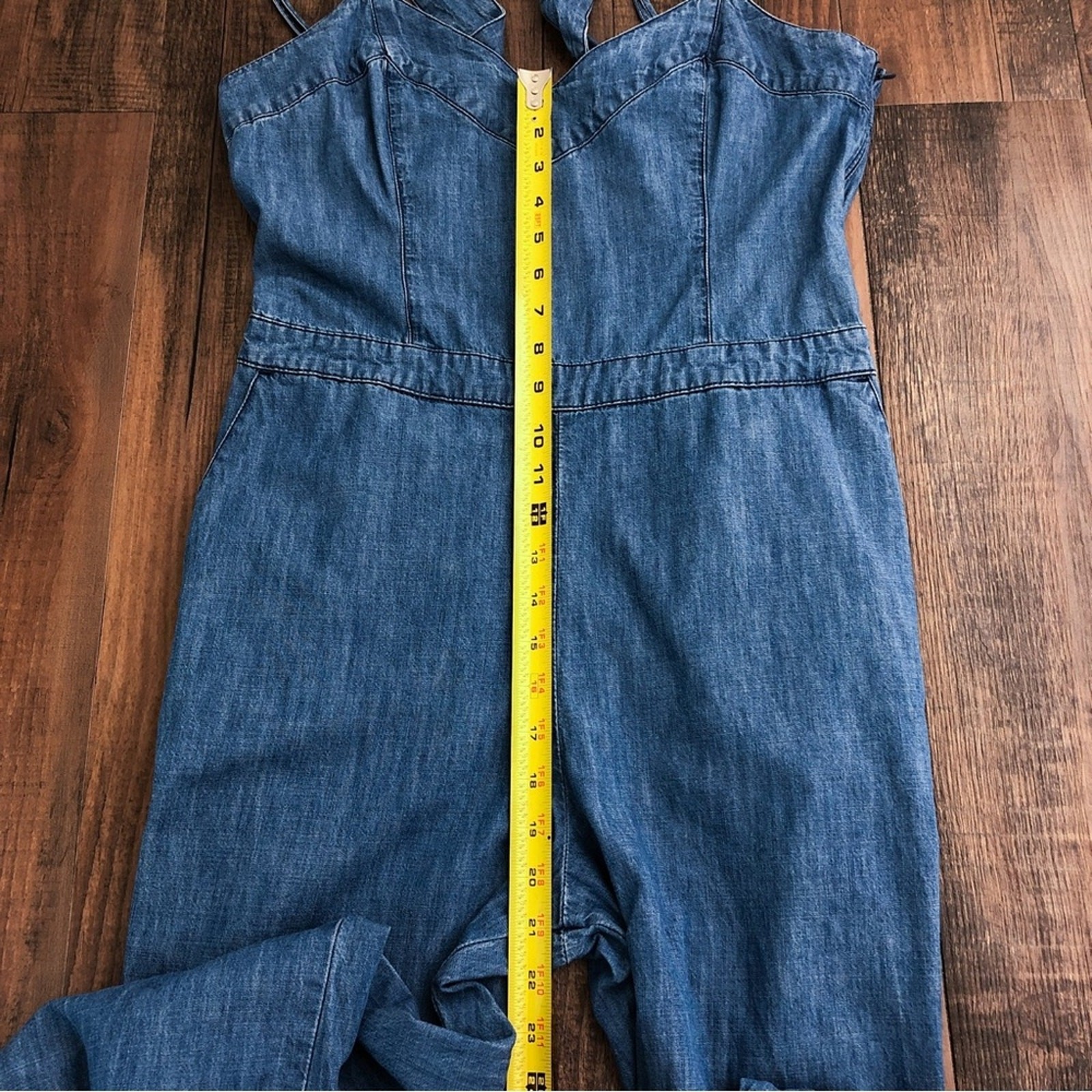 как выглядит Abercrombie Fitch Wide Leg Jumpsuit Chambray Spaghetti Straps Bow Back Size 10 фото