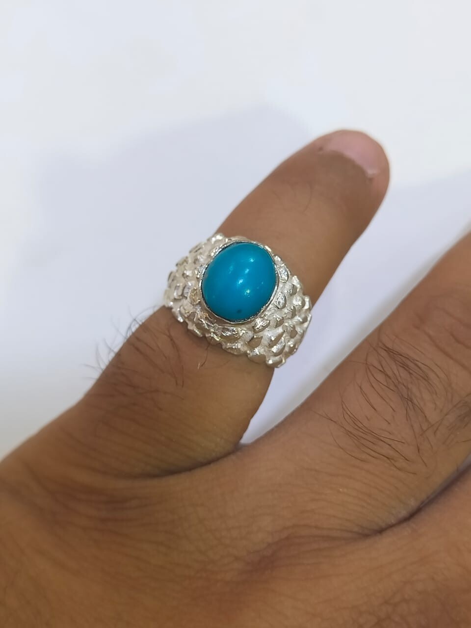 как выглядит Feroza Ring, Natural Turquoise Stone, Handmade Ring, Nihsaapuri Feroza, Silver фото