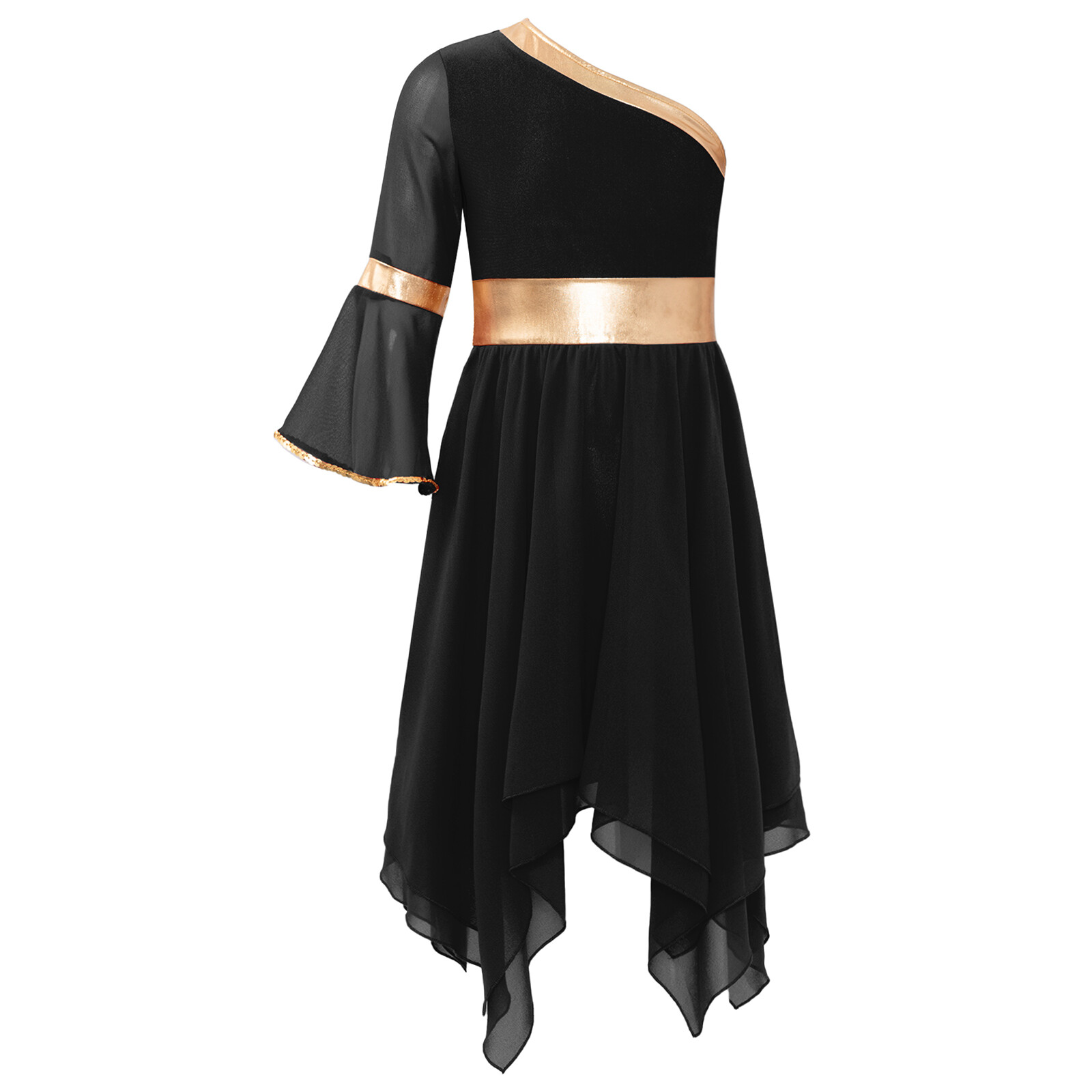 US Kids Girls Dancewear Hem Maxi Gown Dress Sequin Sundress Patchwork Teen Stage